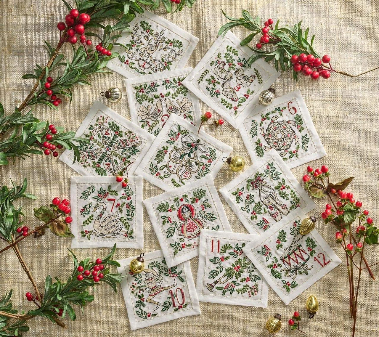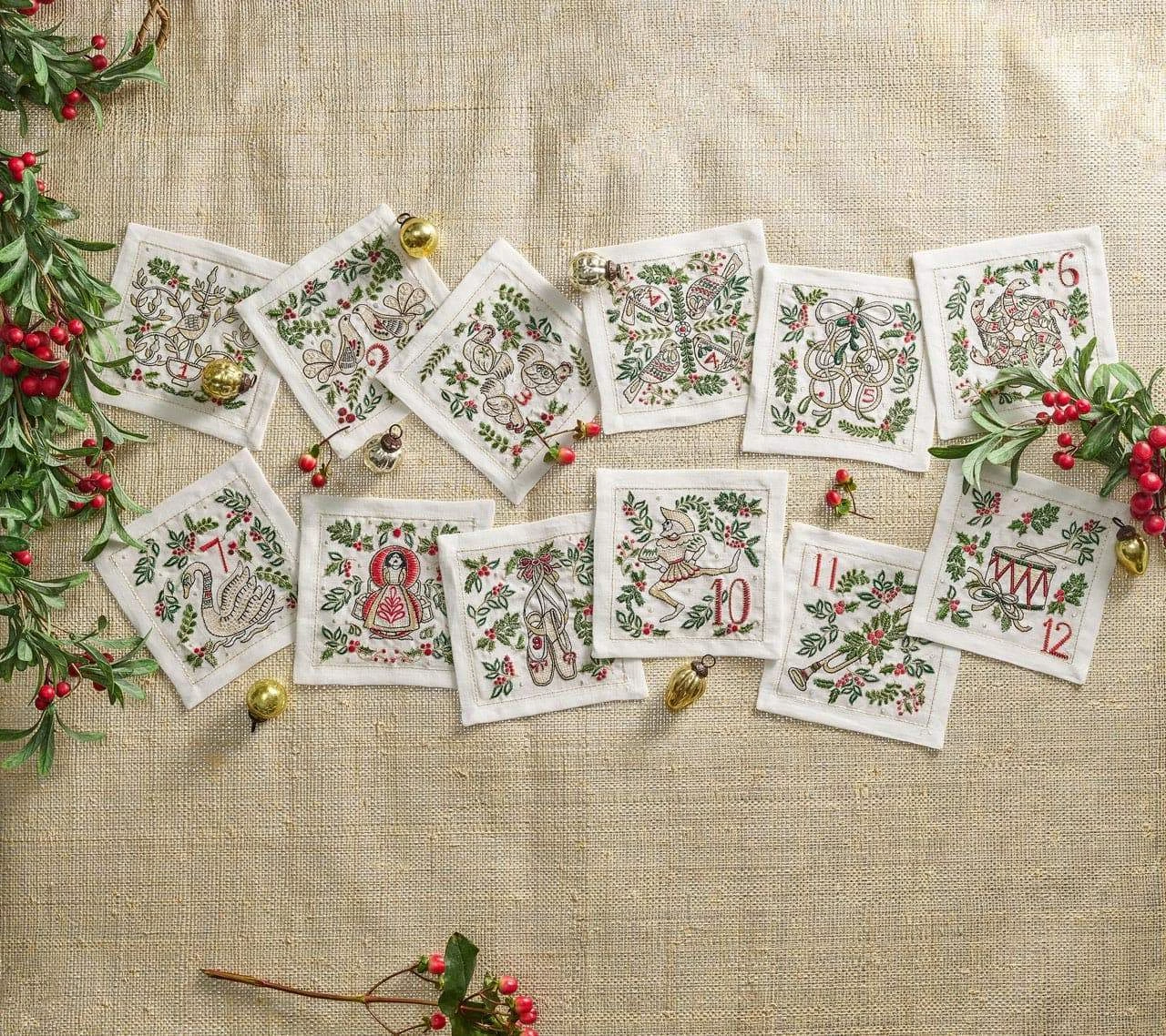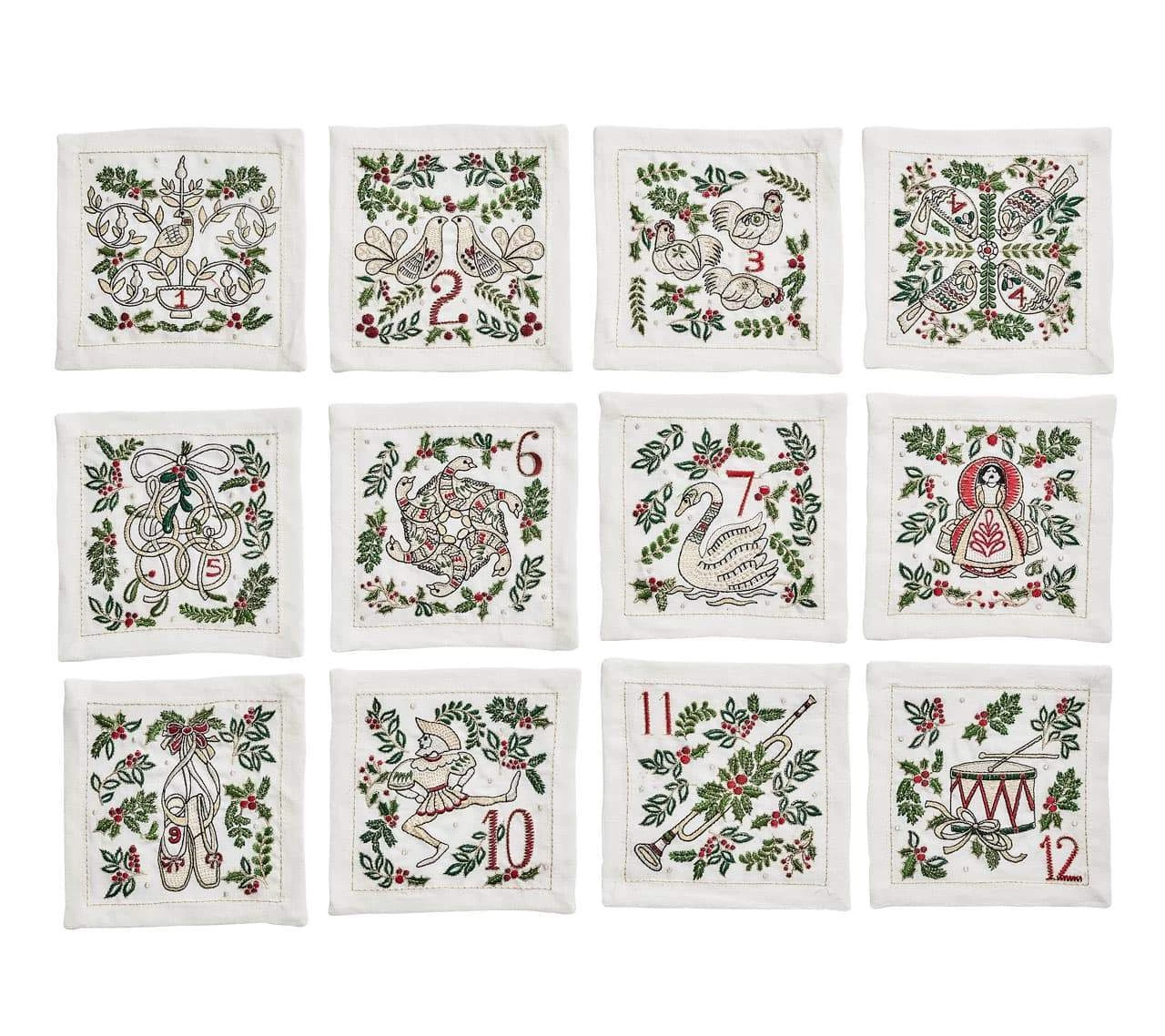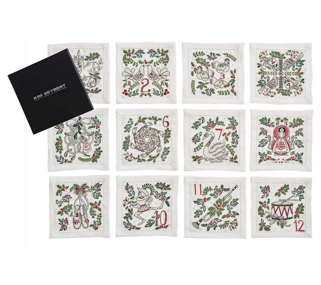 Kim Seybert 12 Days Of Christmas Linen Cocktail Napkins, Set Of 12 In A Gift Box
