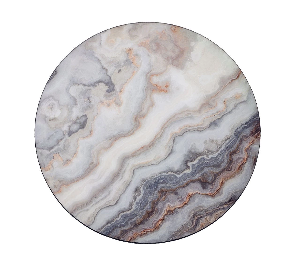 Agate, a compilation of rock crystals and quartz, is regarded for its healing properties. The Agate Placemat is modeled after a slab of Agate found in Sicily, where the crystal was first discovered. The design is printed on acrylic and backed with cork for protection.