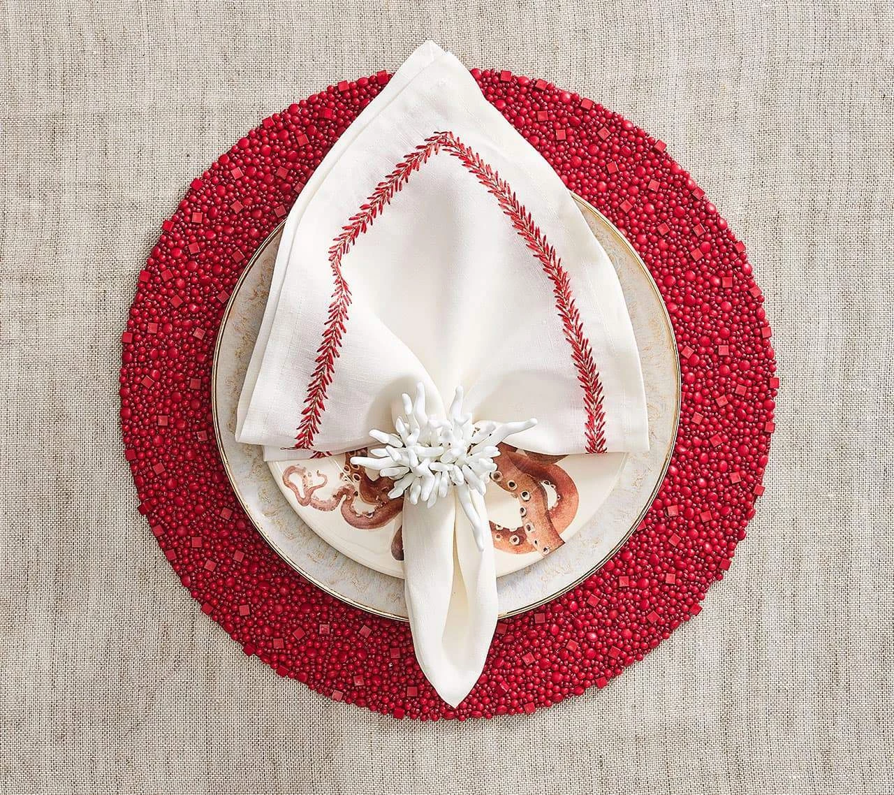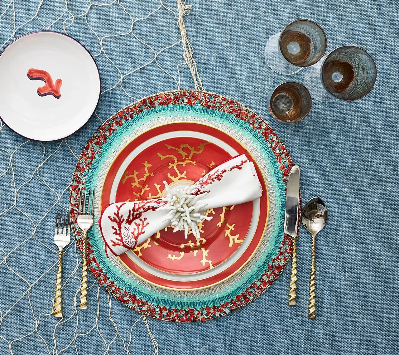 The Amalfi napkin rings borrow their shape and colors from nature’s coral formations. They are made from organically-shaped coral-like beads. Use the all-white version on each place setting for a fun touch at your next poolside party.