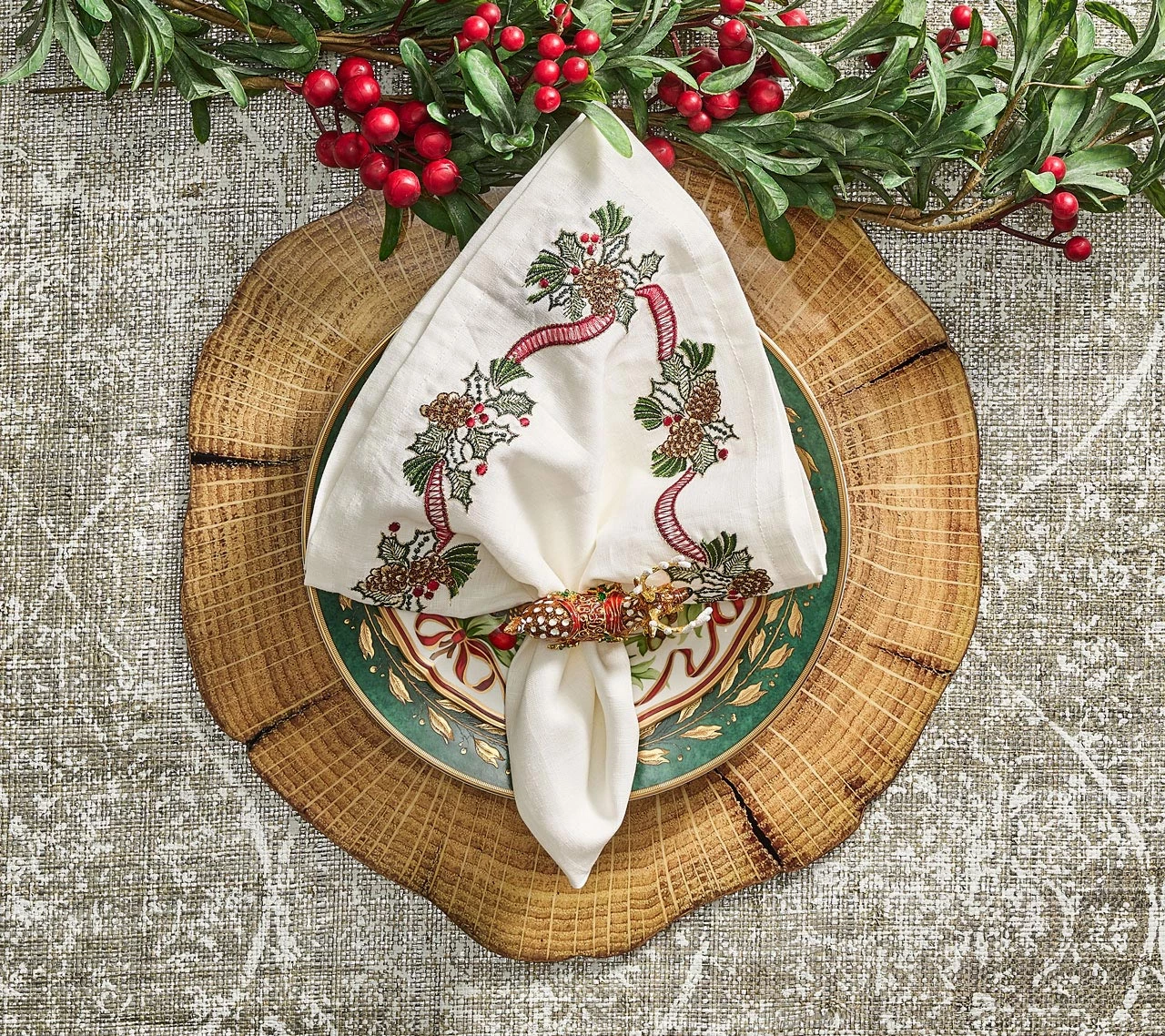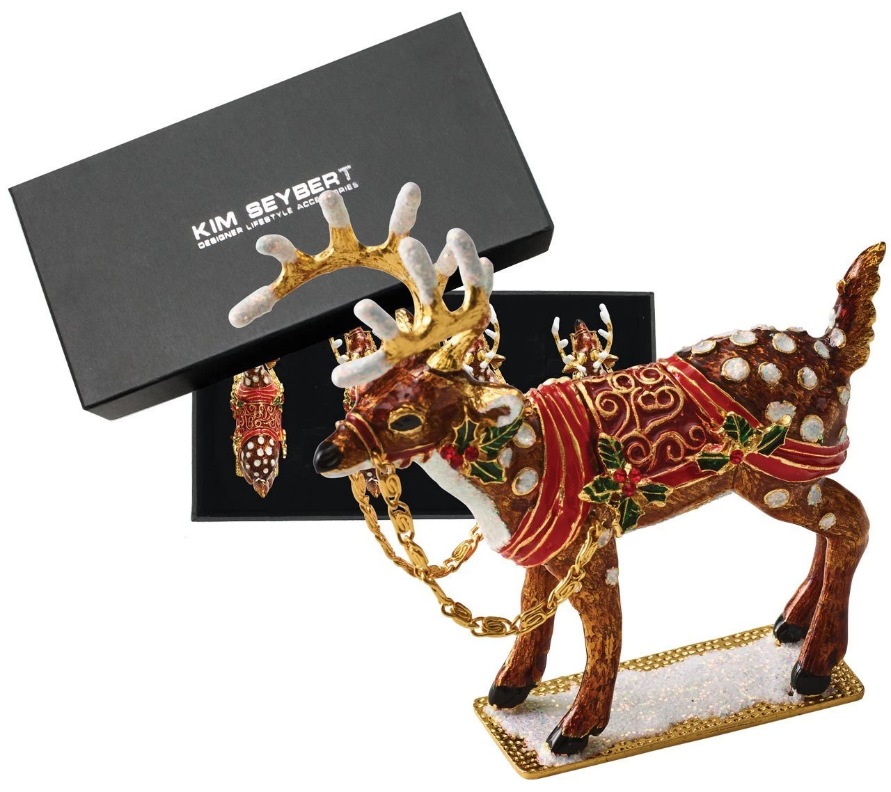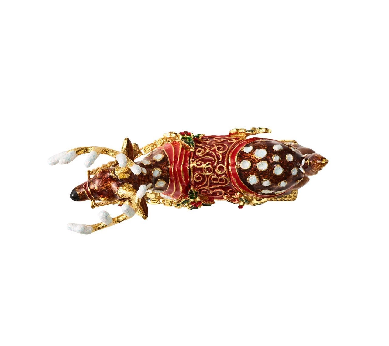 Add a fun and whimsical touch to your Christmas parties with our hand painted enamel reindeer napkin ring named after one of Santa’s helpers. It is in the traditional colors of the season and is sure to bring joy to those you’ve gathered around your table.