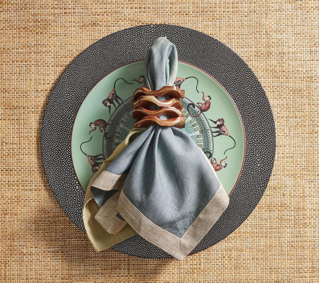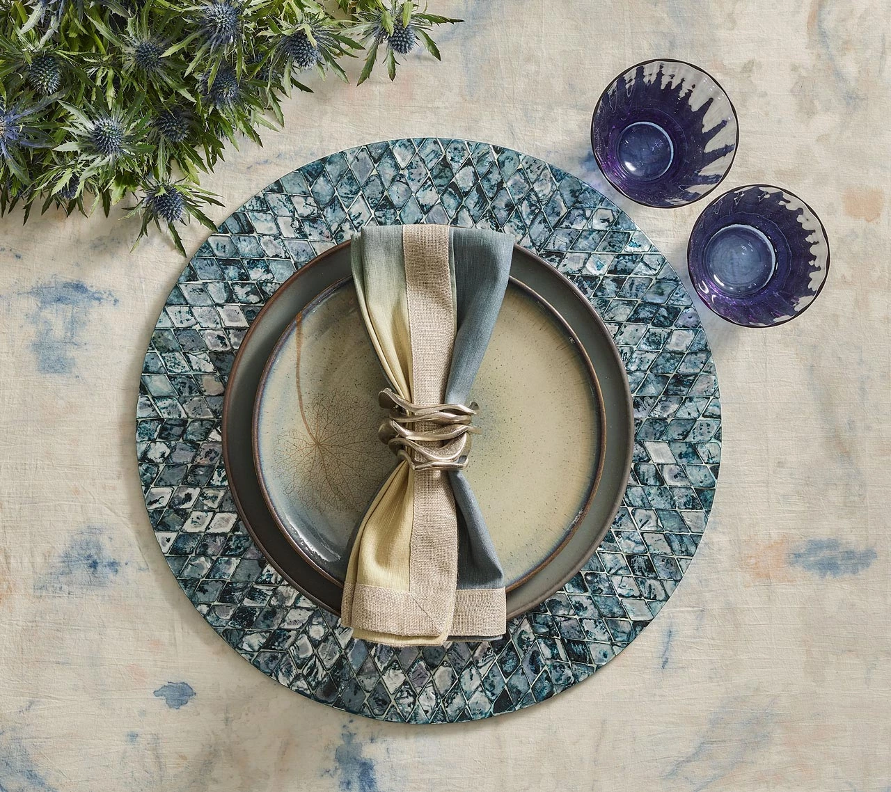 A unique use of color bumps the design of these napkins up a few notches. Each is hand-crafted by the finest artisans in India. Variations in density and depth of color are to be expected.