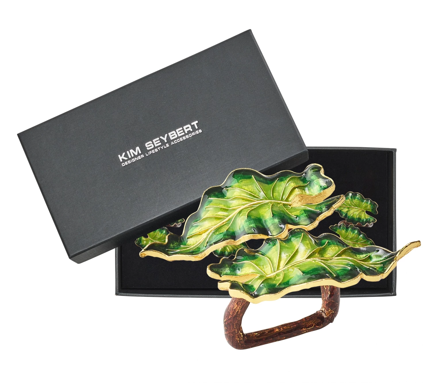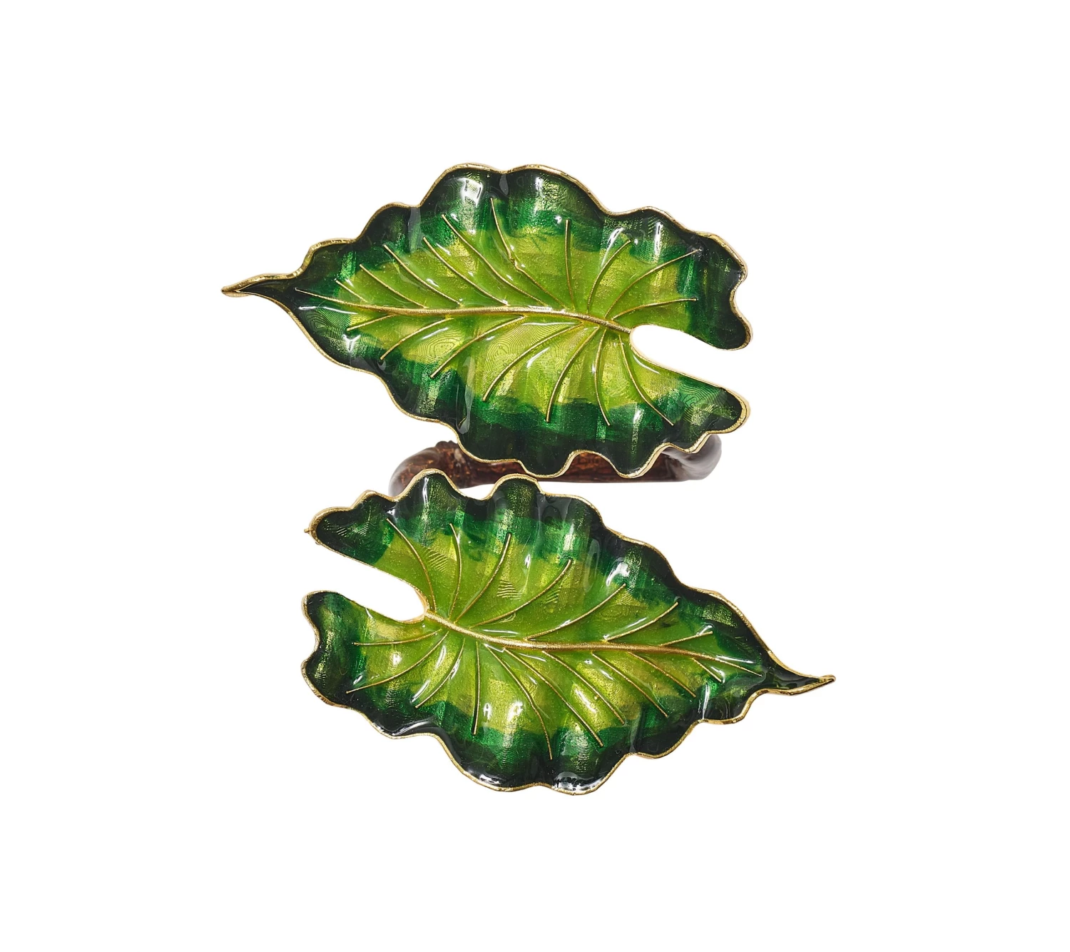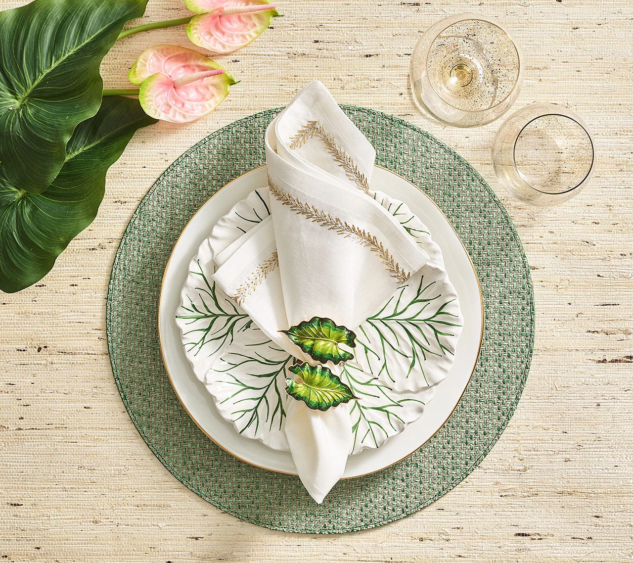 Welcome spring with the hand-made Fern Napkin Ring. The curved shape of the napkin ring features two hand-painted fern leaves. The Fern Napkin Ring is a sophisticated take on the time-honored fern design motif.