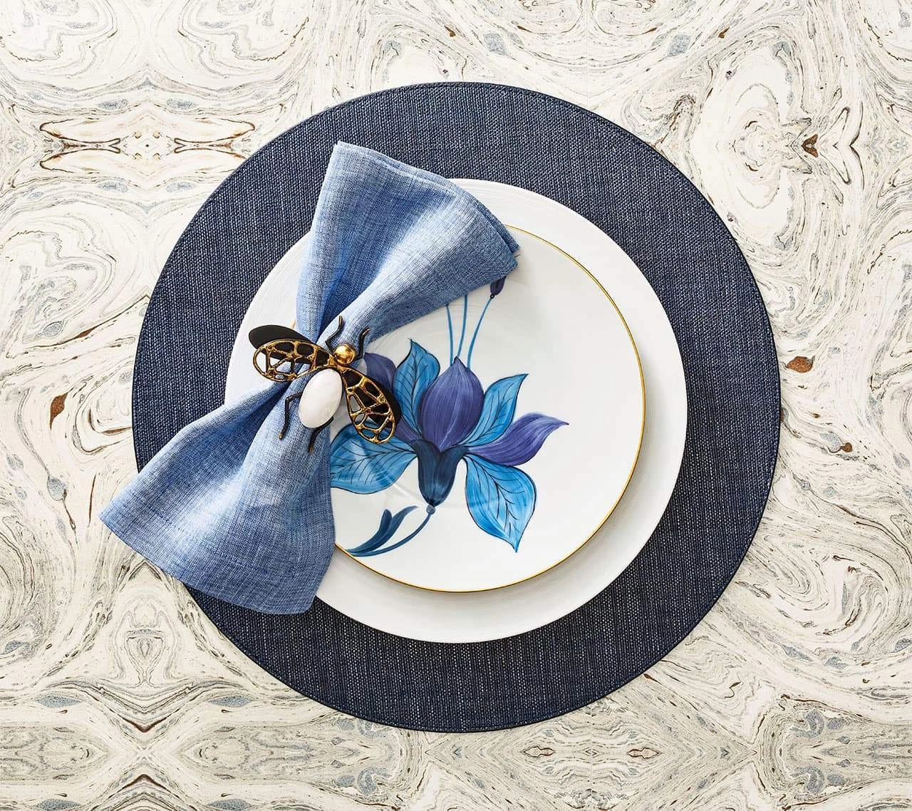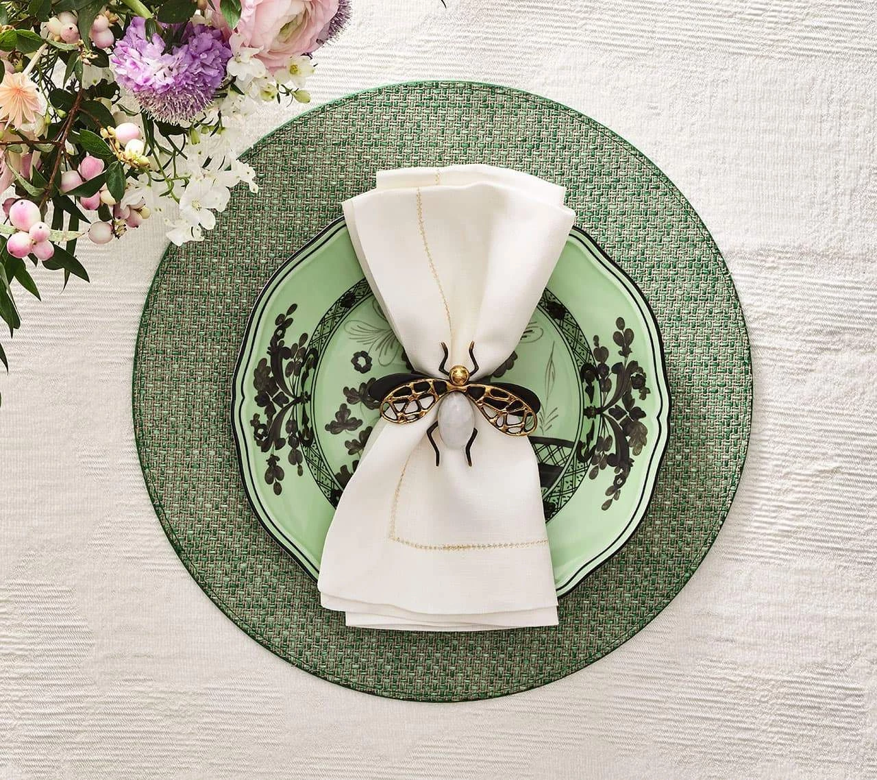 We’re bugging out! Fashion-forward and playful, our embellished napkin rings are formed in brass emphasizing its Quartz abdomen.