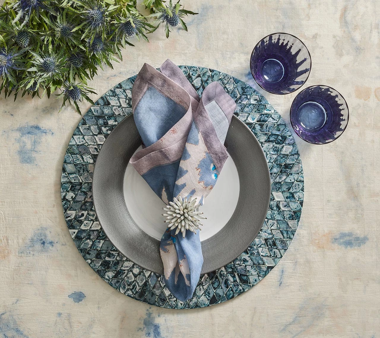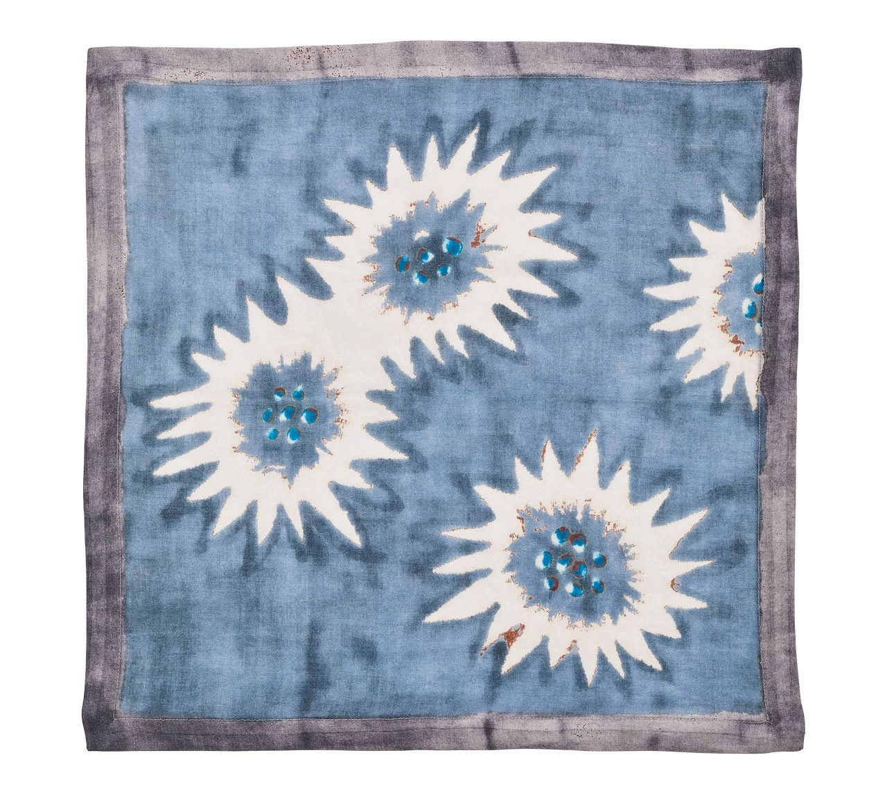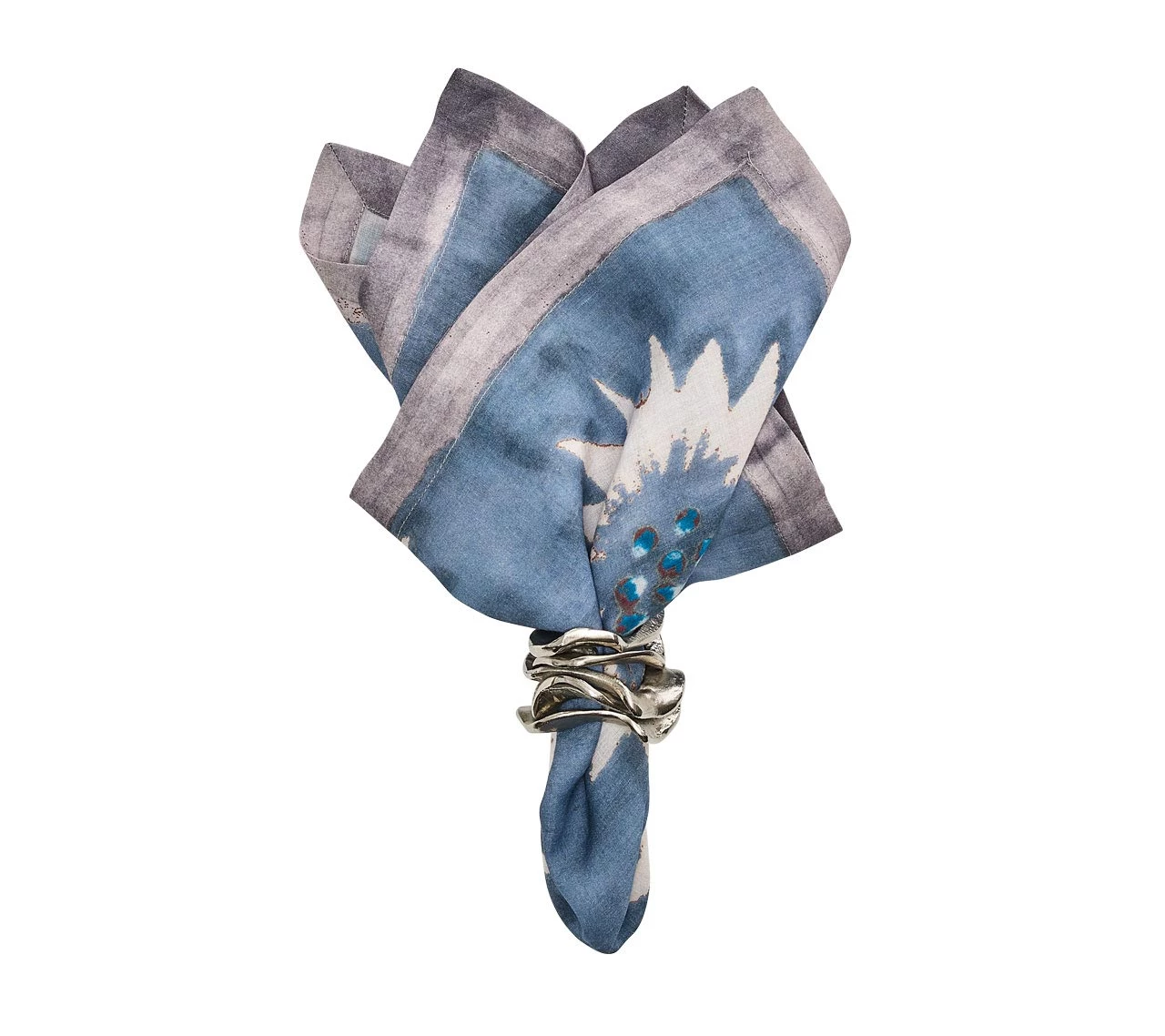 The Foliage Napkin is a printed cloth napkin showcasing a hand-painted floral motif on linen fabric. This luxurious fall cloth napkin is offered in three sophisticated color combinations. The autumnal beige, taupe and gray colorway sets the stage for a festive fall meal, the fluid blue, gray colorway creates a lighter atmosphere and the natural, gray colorway draws on a bohemian, free-spirited ambiance. Perfect for mixing and matching, these printed cloth napkins are an entertaining must-have.