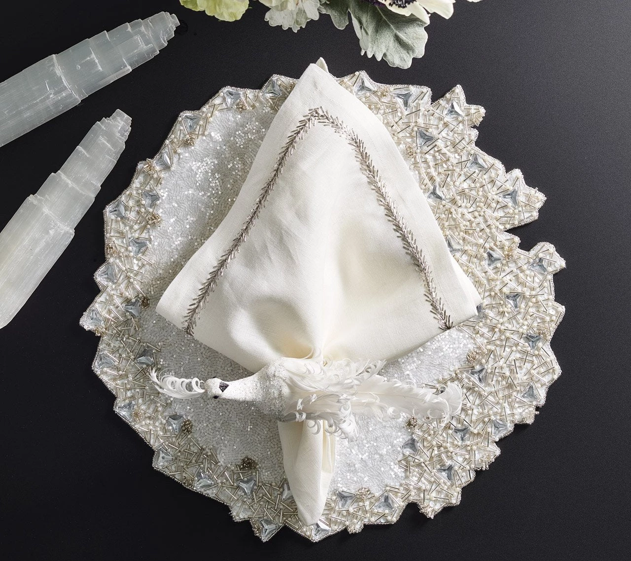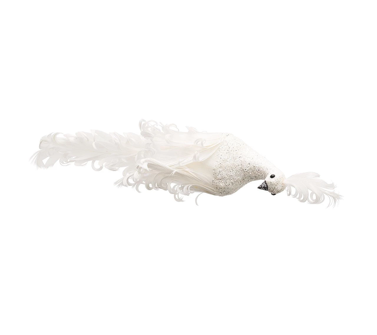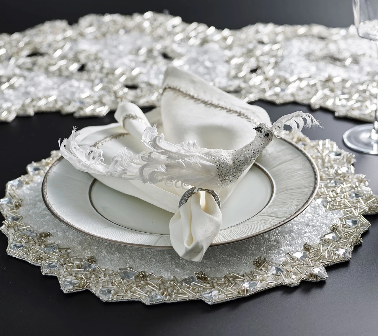 The glamorous Frost Bird Napkin Ring adds an elegant wintry element to any festive table. Featuring long, white plumes and touches of glitter, this fictitious bird is a winter addition to the avian collection.