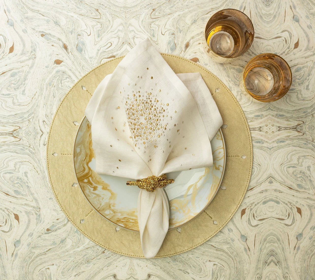 The Gold Glam Knot Napkin Ring is influenced by the refraction of light on New York City skyscrapers. These elegant napkin rings feature a double row of metallic roping with a top knot. The Glam Knot Napkin ring in golden shades is a perfect fall napkin ring for a Thanksgiving table setting.