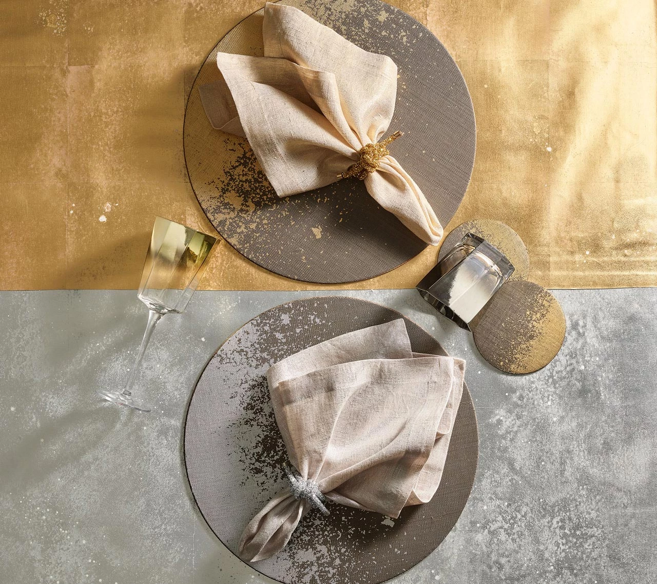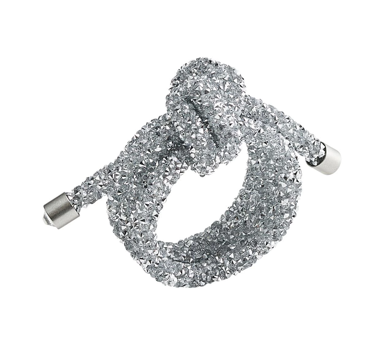 The Silver Glam Knot Napkin Ring is influenced by the refraction of light on New York City skyscrapers. These elegant napkin rings feature a double row of metallic roping with a top knot. The Silver Glam Knot Napkin ring works as a wedding napkin ring or on a festive holiday table setting.