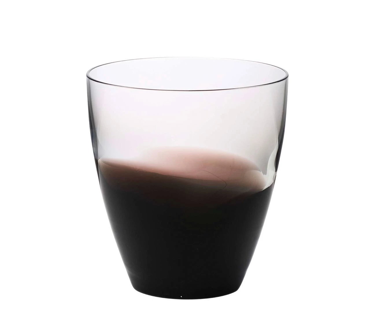 Every item in our mouth blown Vague collection undergoes a two-step process. Each piece is first blown to create its body in clear, then a second layer of smoke colored glass is blown to form its one-of-a-kind tinted base.