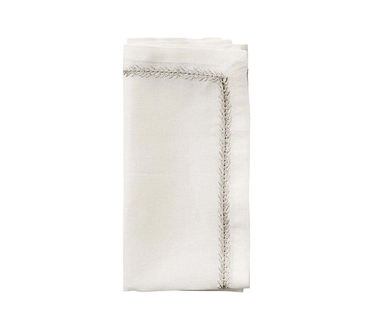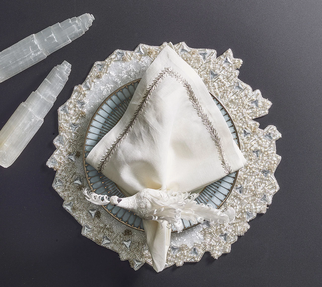 The Jardin Collection transports the garden to your table. The intricate embroidery on the linen Jardin Napkin plays with texture and metallic silvers.