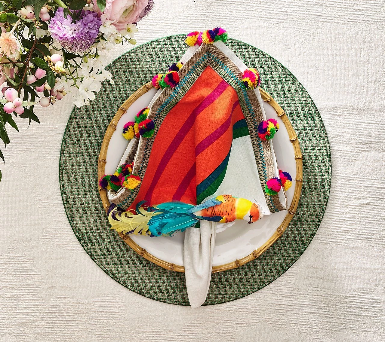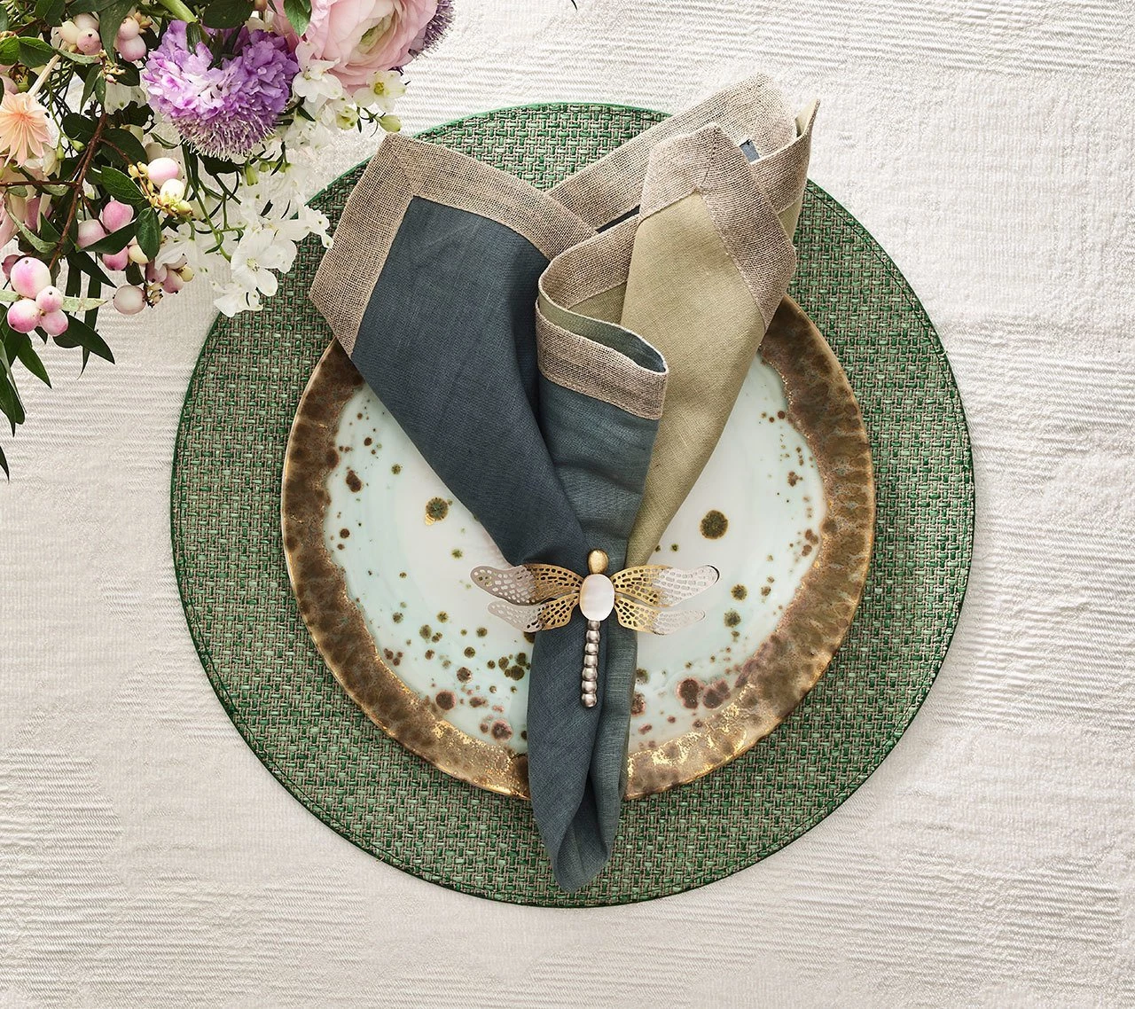 The Jardin Collection transports the garden to your table. The fresh, basket-weave inspired Jardin Placemat plays with texture and shades of green.