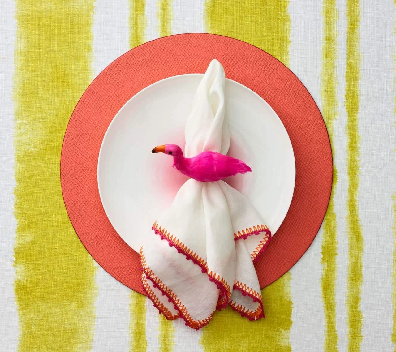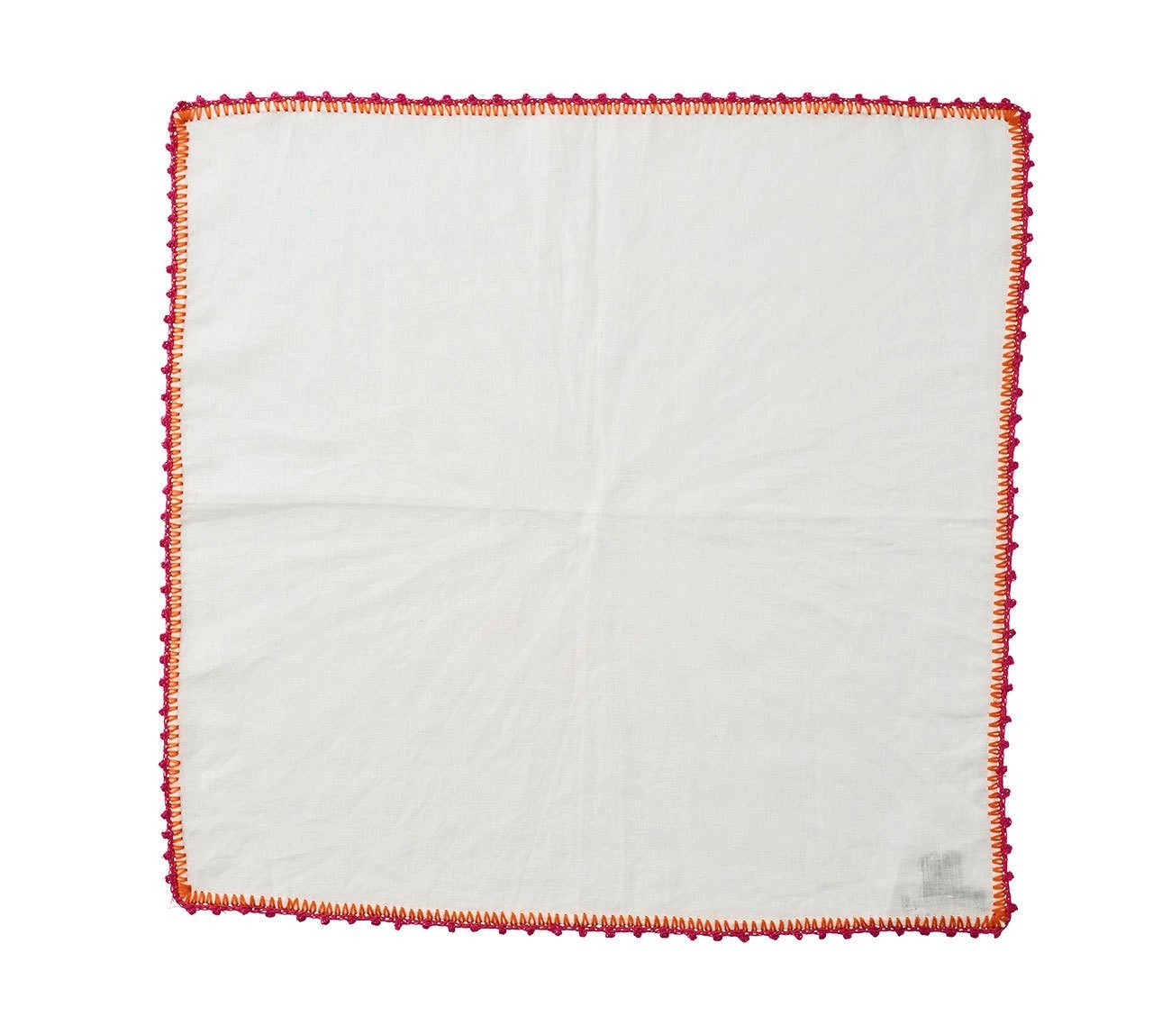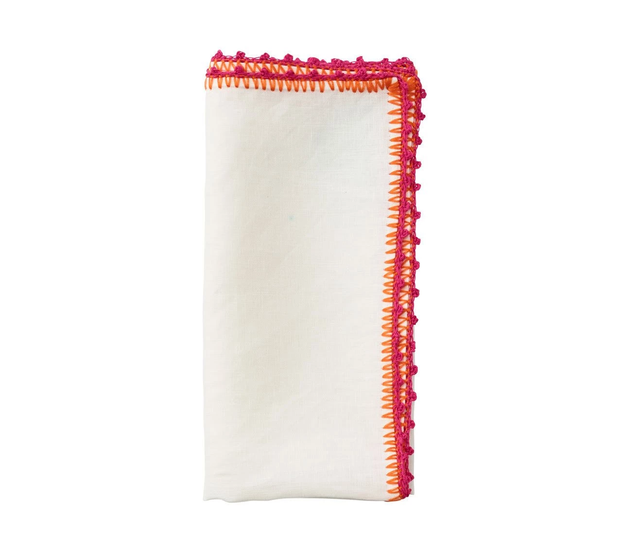The Knotted Napkin will sure make for a lively addition to your table, what with its two-tone hand crocheted edging in vibrant combinations. Its white linen body all the more brings the eye to the colorful trim. Choose from Pink/Orange, Turquoise/Green or Natural/Brown.