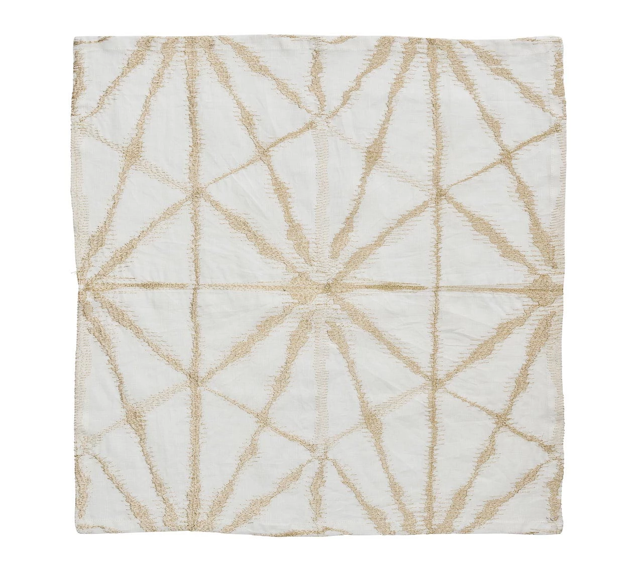 The Luna Napkin in white and gold is named for Luna, the divine embodiment of the moon, a mysterious and mystical being. Gold threads are woven into this cloth napkin depicting stars shooting through the sky. This napkin works in any tablescape, from casual to formal and works well as a bridal shower napkin or wedding napkin.
