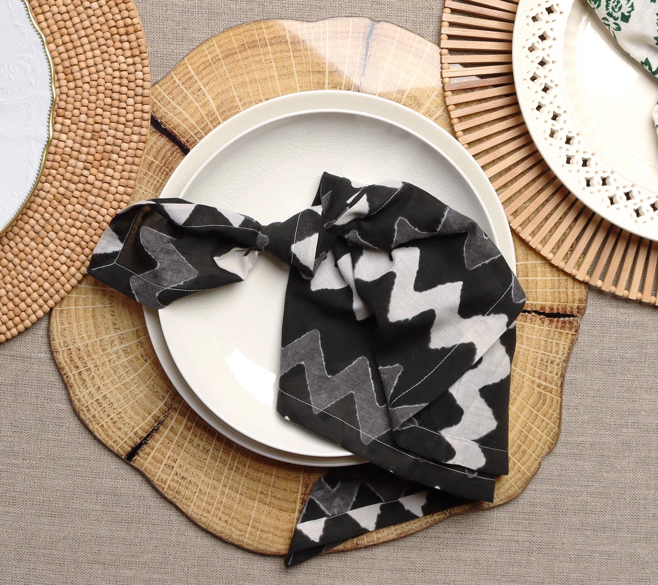 Featuring a black, white and grey zig zag pattern, the Michelle Napkin is a modern interpretation of a classic print. Made of 100% cotton the Michelle Napkin is great for everyday use and the perfect addition to your collection.
