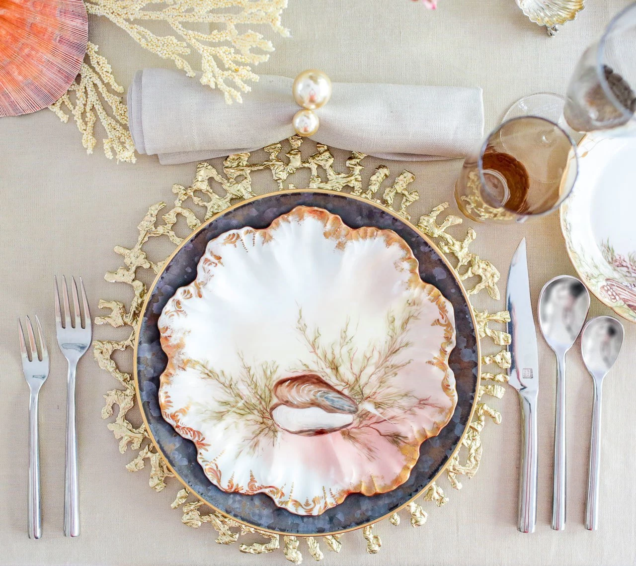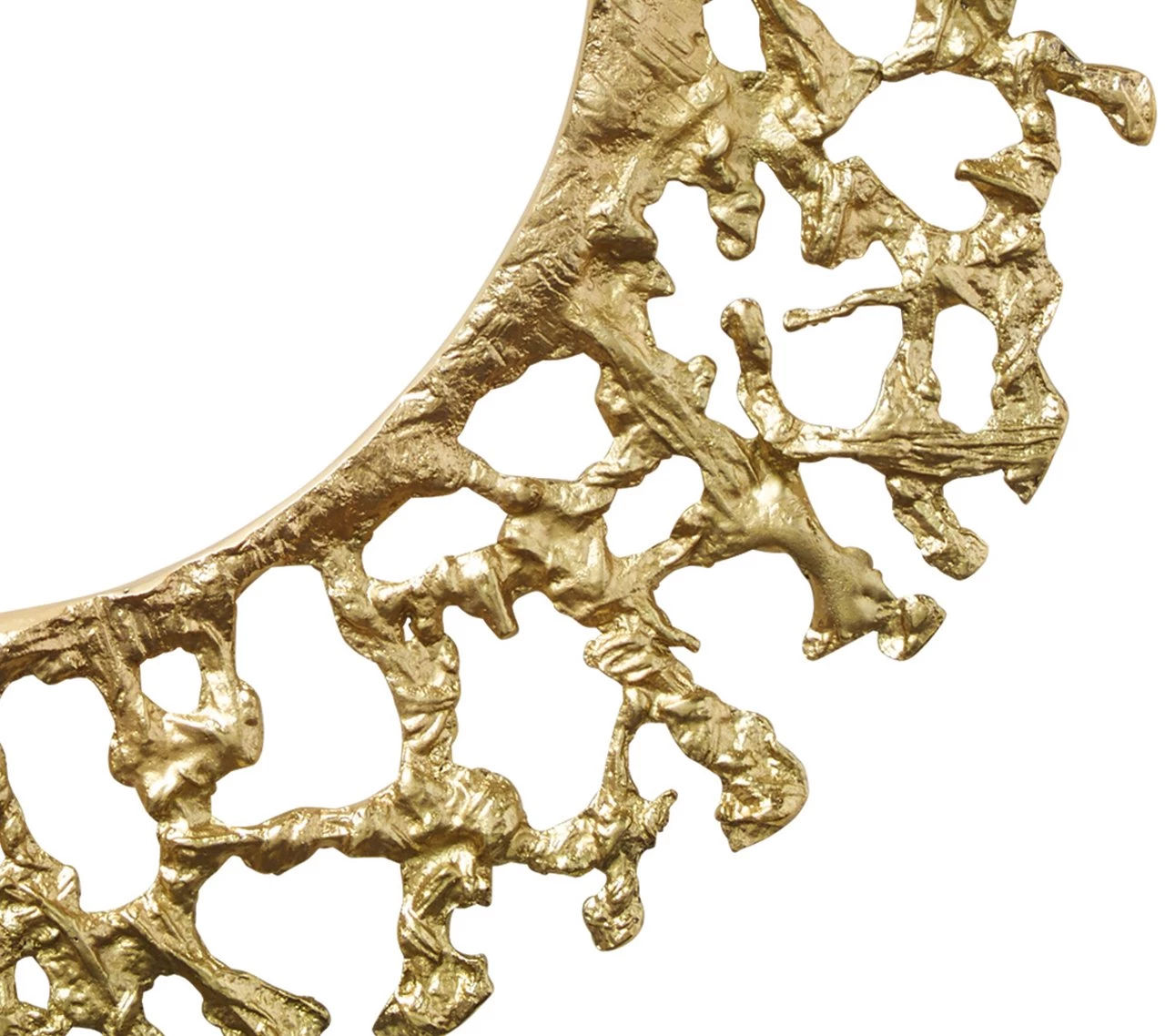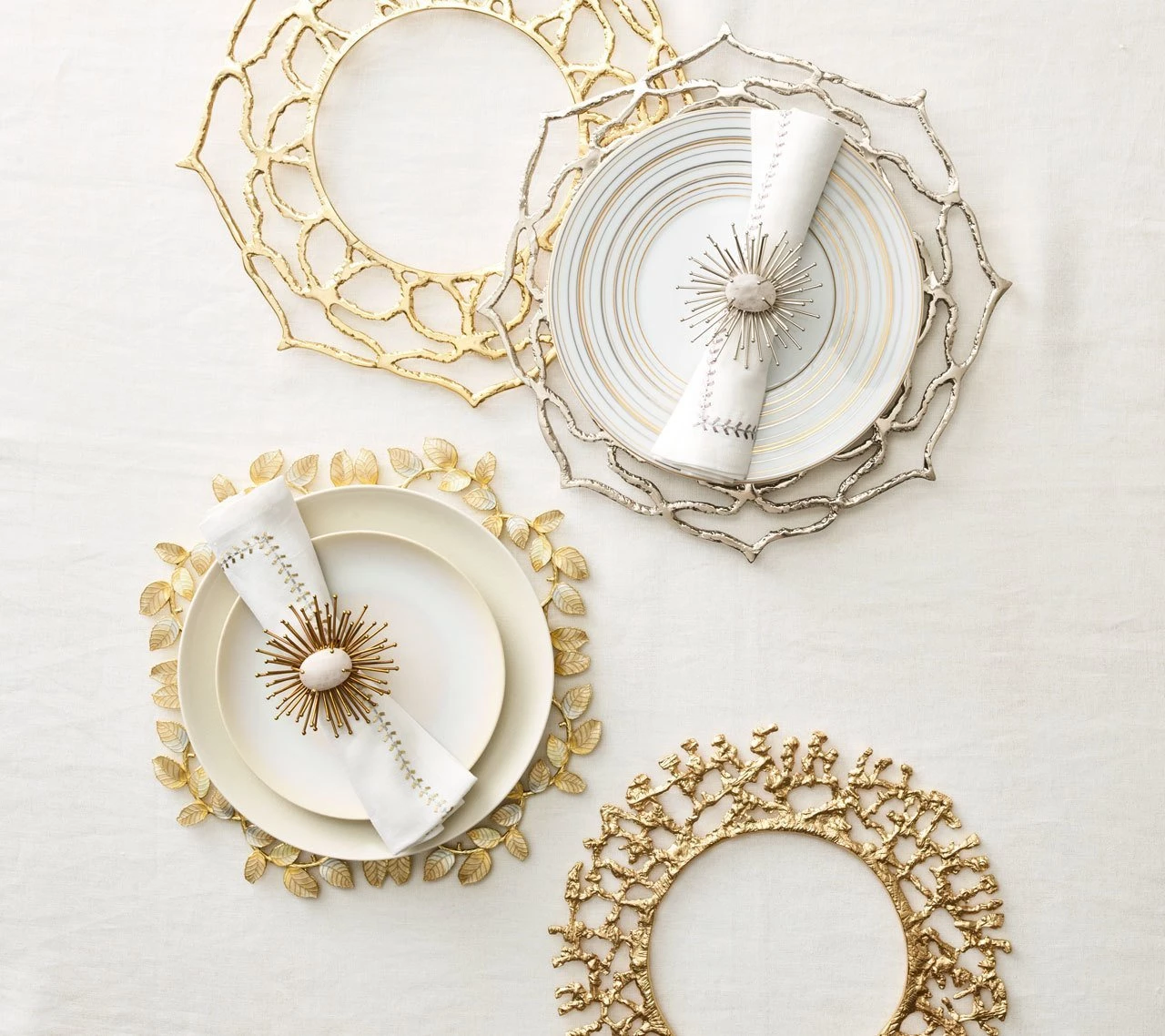 The round Molten Charger in gold was inspired by nature’s coral formations. This gold charger will add an elegant, luxurious glow to any table setting whether a seaside inspired dinner party or more formal affair. The handcrafted gold Molten Charger is handcrafted by talented artisan and sold in sets of four.