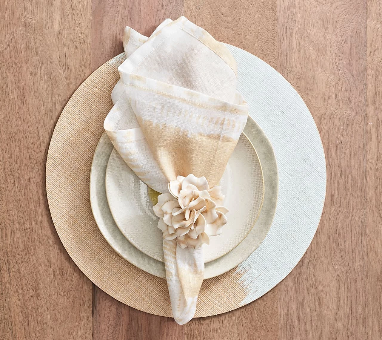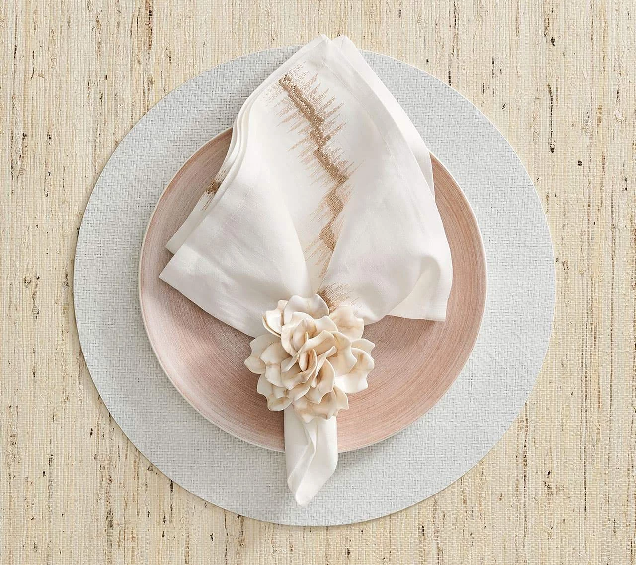 Inspired by a blooming Dahlia, the aptly named Dahlia Napkin Ring is a stunning replica of the delicate flower. Acrylic ivory petals are hand-arranged atop an acrylic base to form a spectacular bloom on this napkin ring. Add an elegant decorative element to any table with this beautiful floral napkin ring.