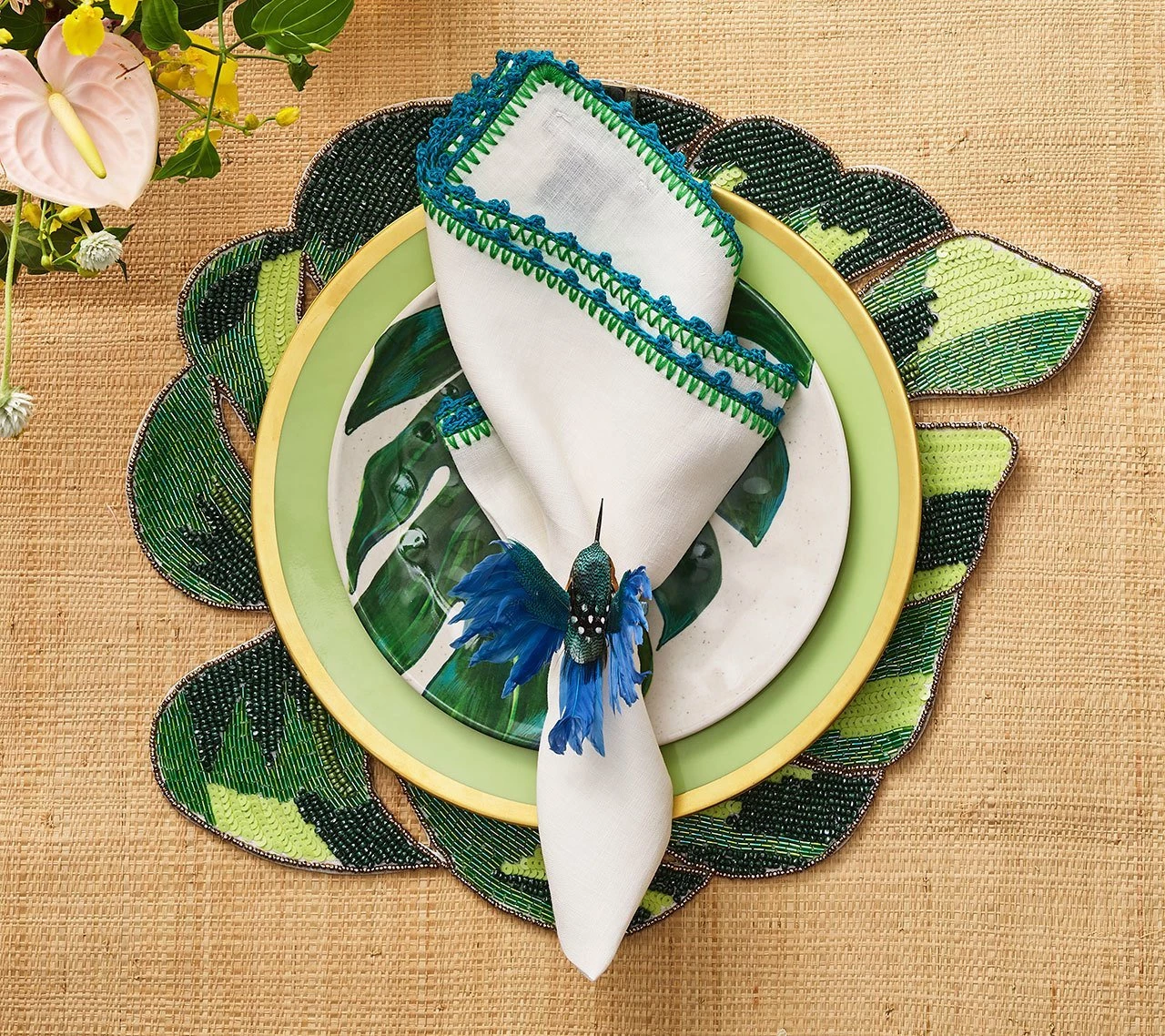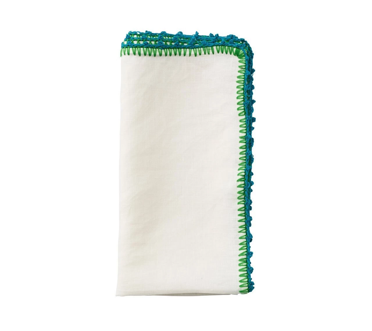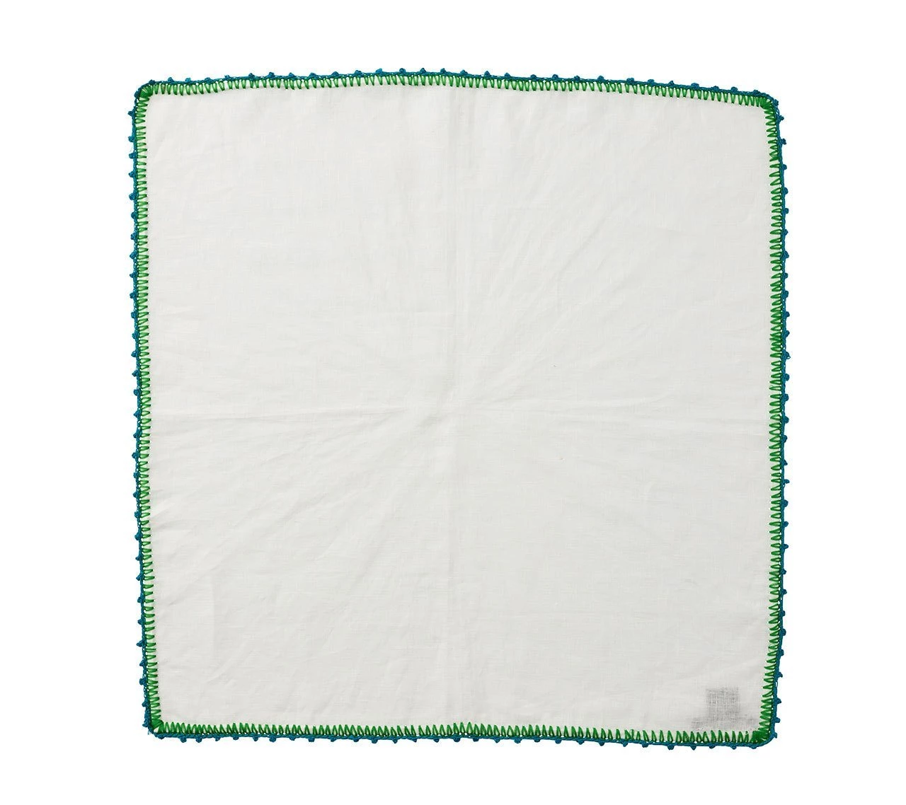 The Knotted Napkin will sure make for a lively addition to your table, what with its two-tone hand crocheted edging in vibrant combinations. Its white linen body all the more brings the eye to the colorful trim. Choose from Turquoise/Green, Pink/Orange or Natural/Brown.