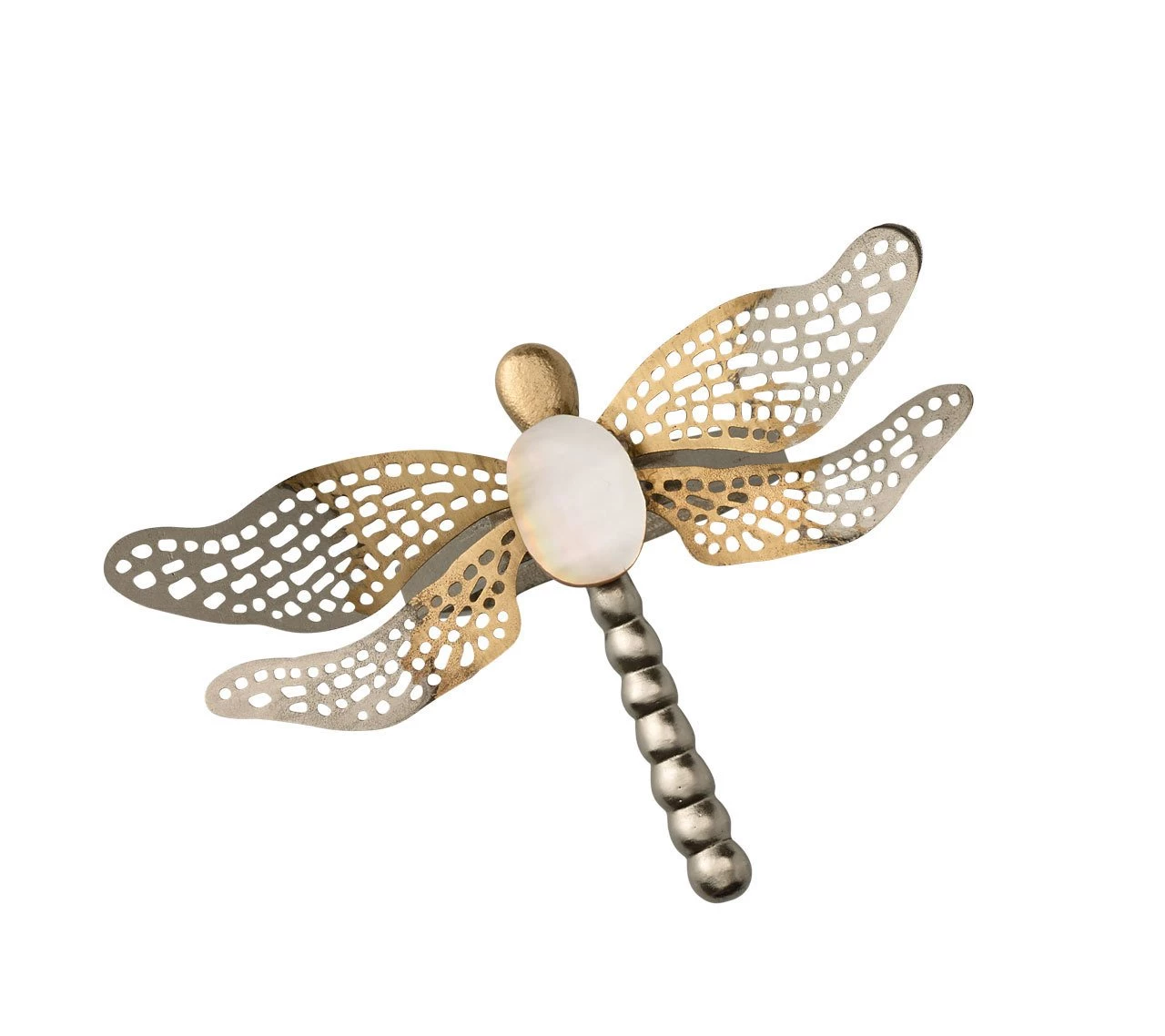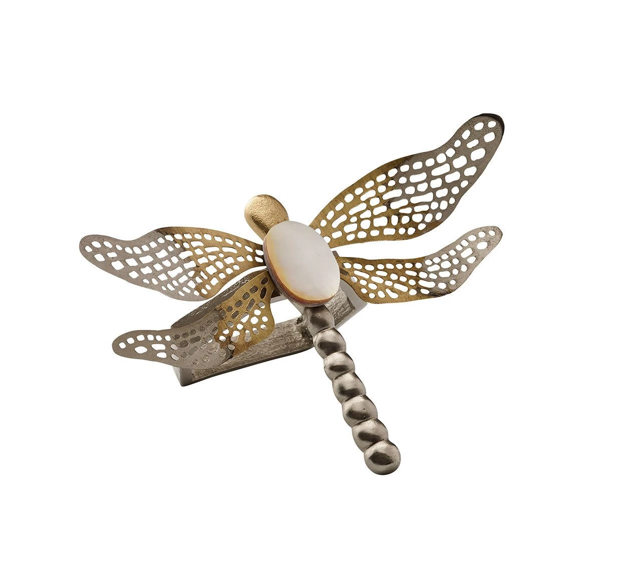 Have this dragonfly napkin ring fluttering on your table setting and you’re bound to impress your guests. Its wings shimmer because of the etched brass and it also features a polished mother of pearl body.