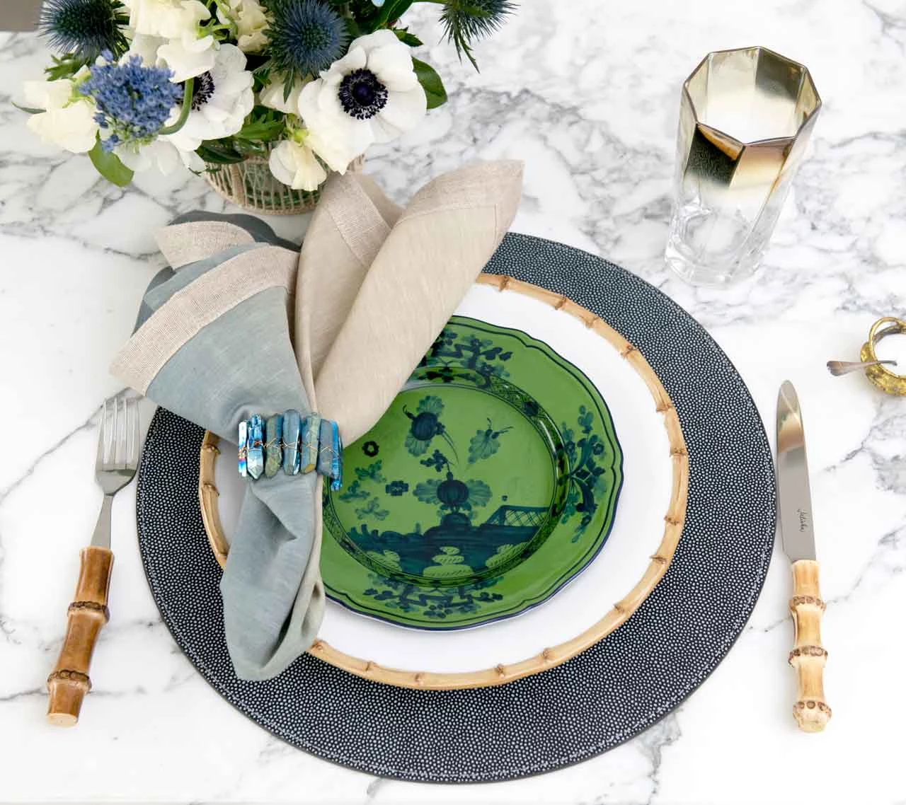 The Oriente Italiano collection features airbrushed strokes with delicate hues on porcelain. A stylized carnation, in the tradition of Florentine ceramics and reinterpreted by Gio Ponti in 1946. Decorated by hand in Italy.