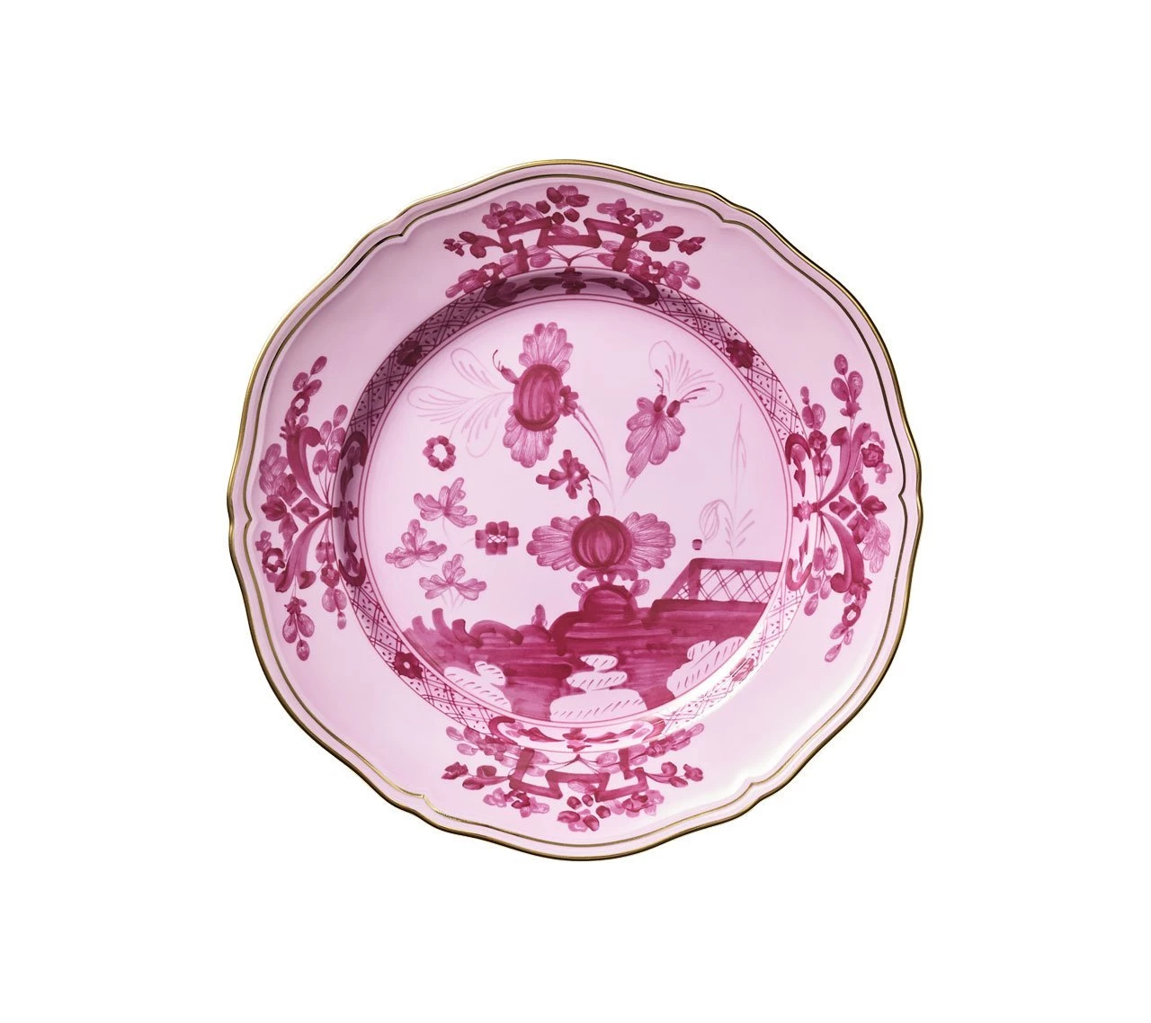 The Oriente Italiano collection features airbrushed strokes with delicate hues on porcelain. A stylized carnation, in the tradition of Florentine ceramics and reinterpreted by Gio Ponti in 1946. Decorated by hand in Italy.
