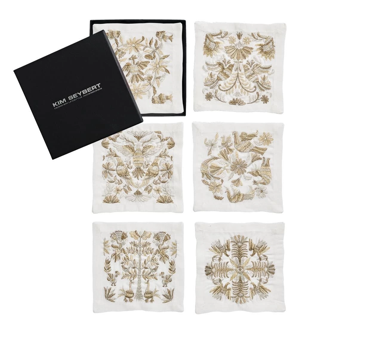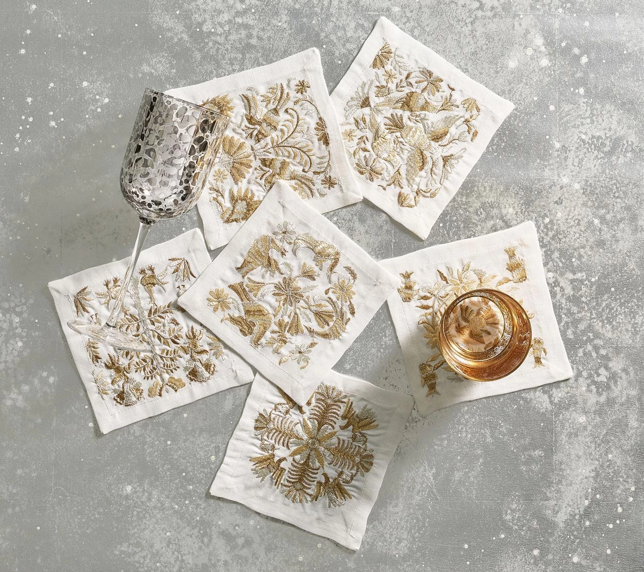 Silhouette Mexican tapestry provide the inspiration for this cocktail napkin set. Use them to serve cocktails from your bar cart pre-dinner party.