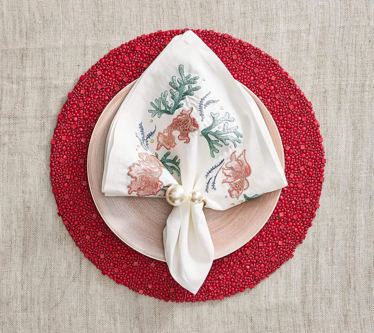 Kim Seybert’s Pearl Napkin Ring in ivory and Gold will have your table setting looking chic and elegant. Find the perfect napkin rings for your wedding table decorations.