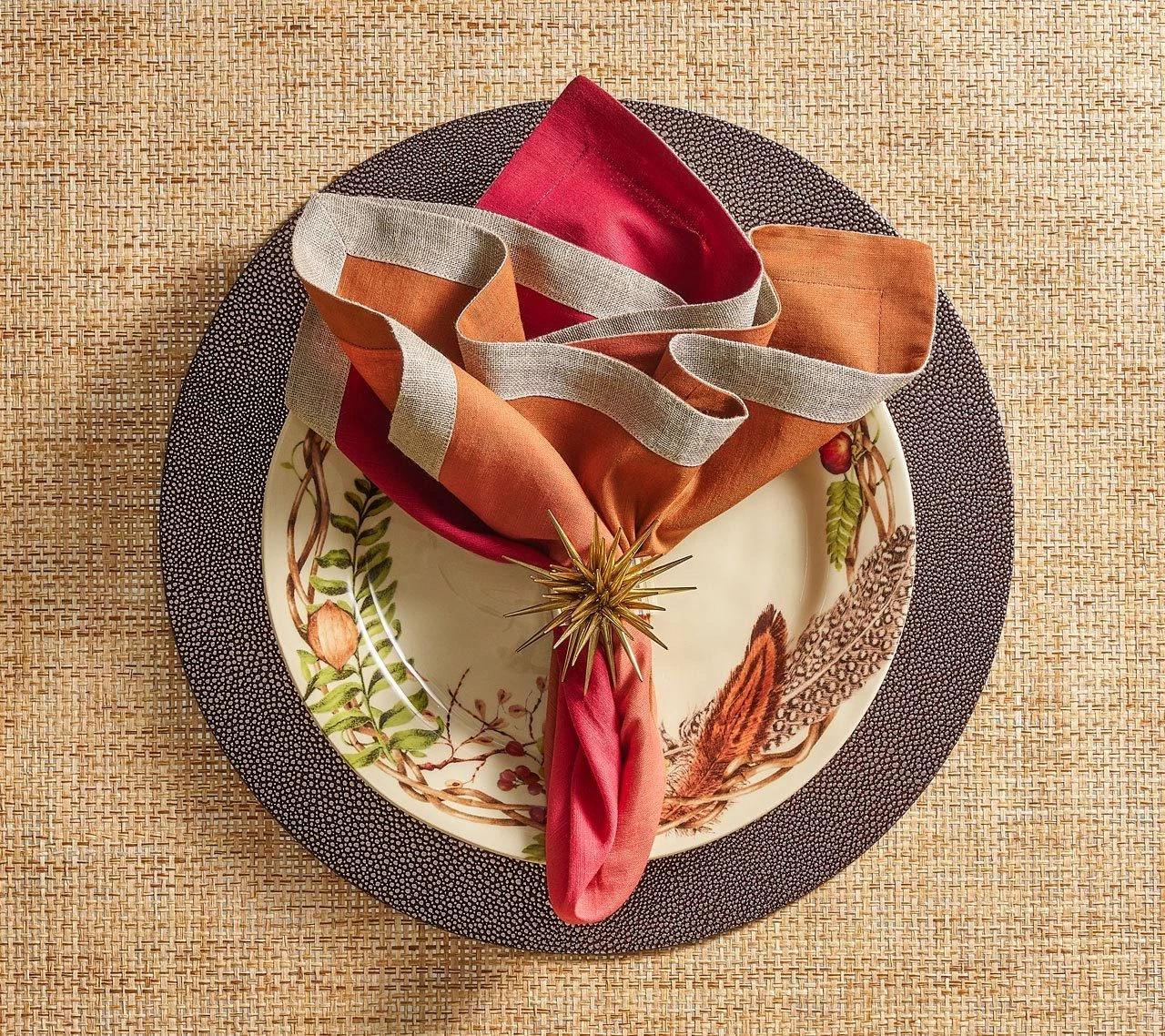 The round Pebble Placemat features a smooth, flawless pebble inspired luxurious surface. Offered in four colorways, gold, silver and two fall hues of bronze and gunmetal, these round placemats add an understated richness to the table.