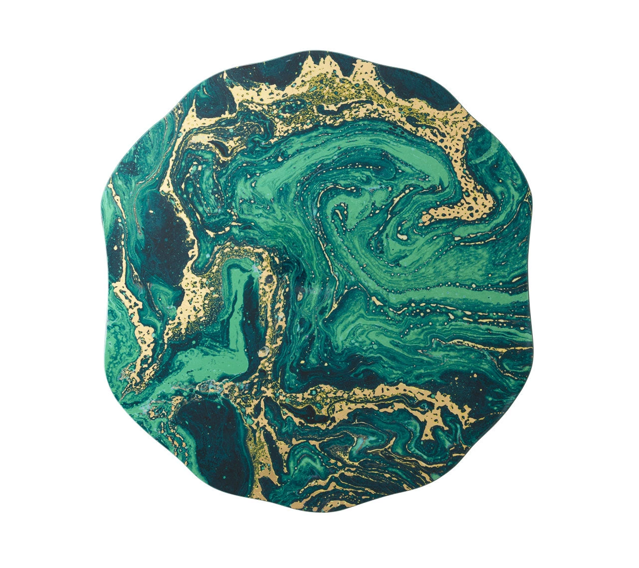 The celestial inspired round Cosmos Placemat is the perfect contemporary placemat for any kind of entertaining. Intricate marbling in bursts of emerald greens creates a heavenly effect. These easy to clean round placemats are finished with a lacquer coating, protecting the intricate marble design and adding a beautiful sheen.