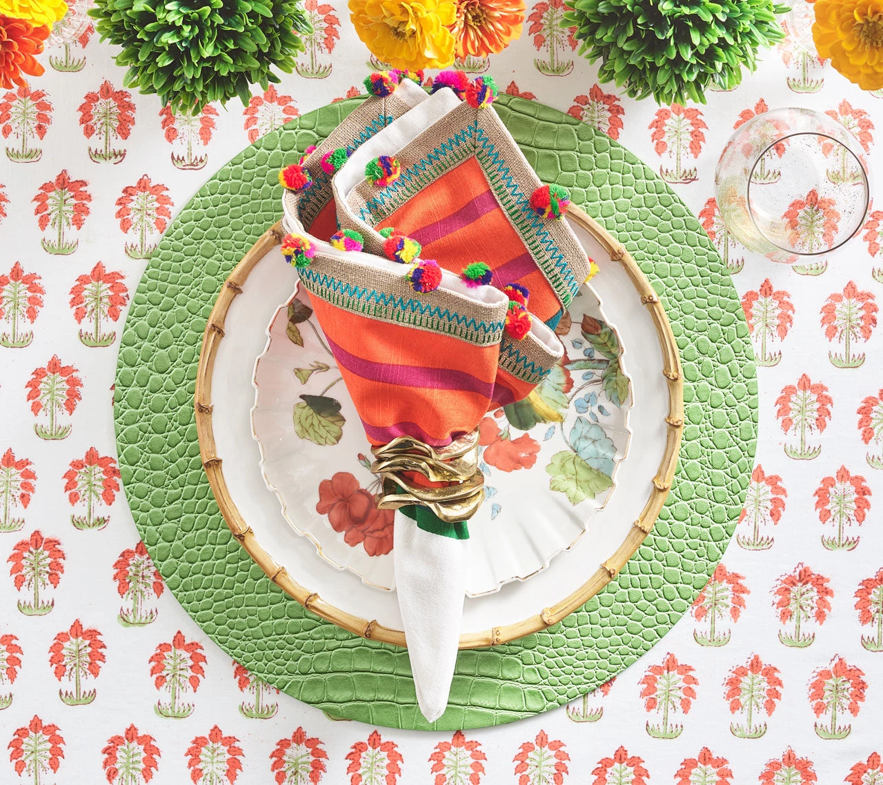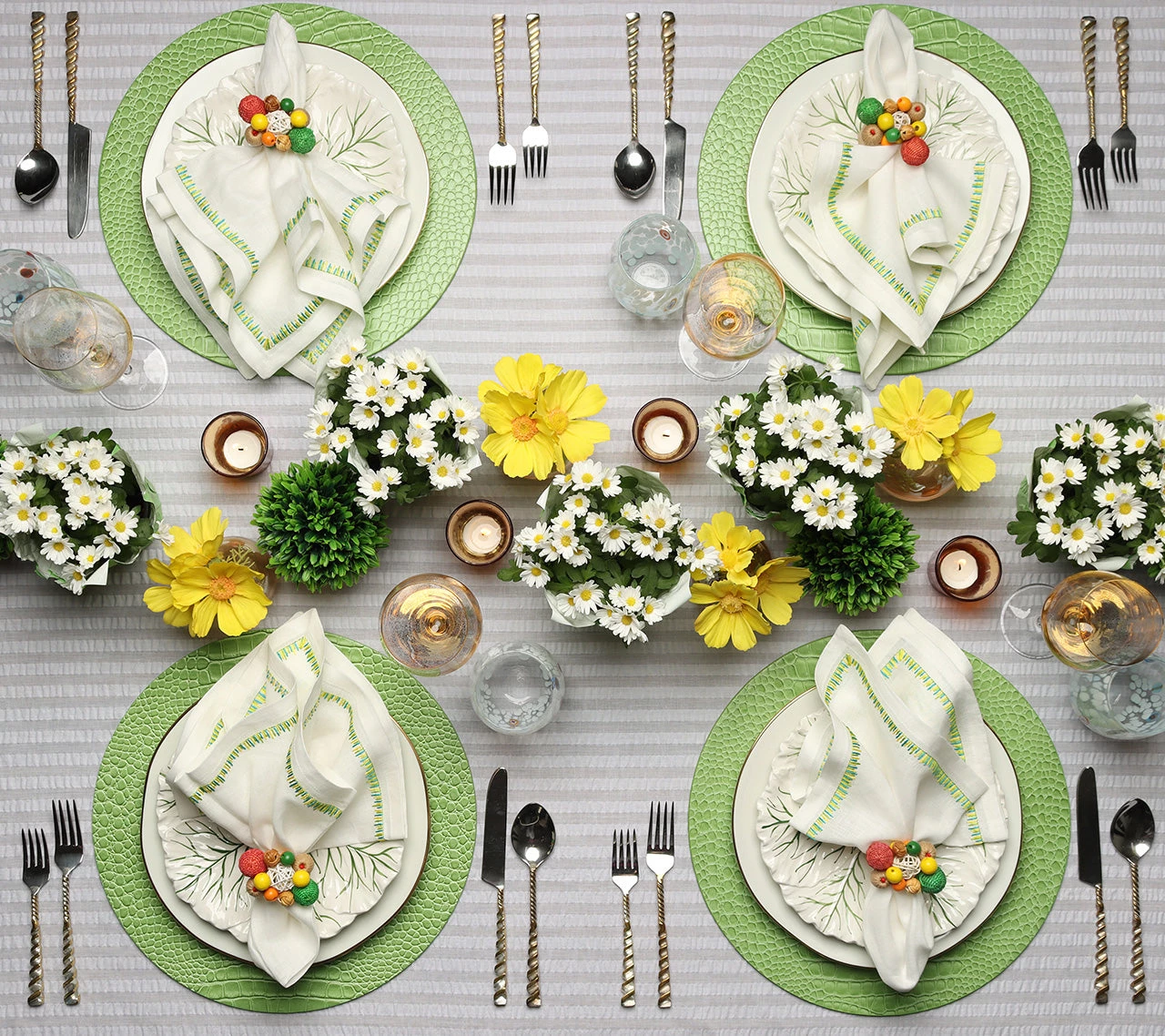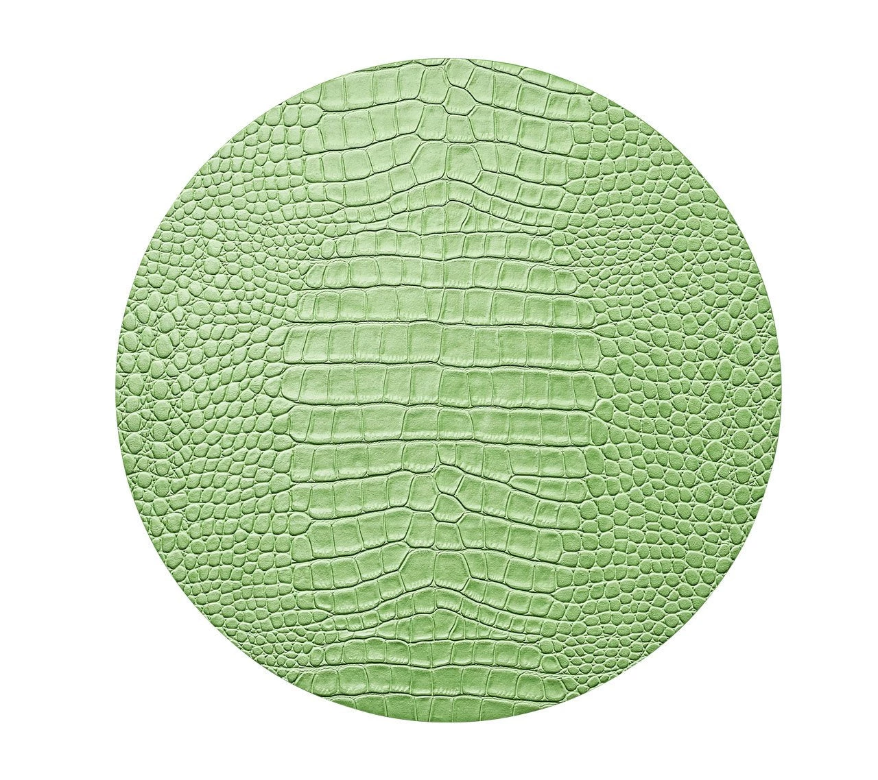 The round embossed faux Croco Placemats are the perfect staple for a holiday table. The organic yet sophisticated crocodile pattern in green works in any season. The subtle green placemat completes a springtime soiree or complements a well-appointed fall table. Perfect for entertaining, these placemats are easy to care for; simply wipe them down before storing them.