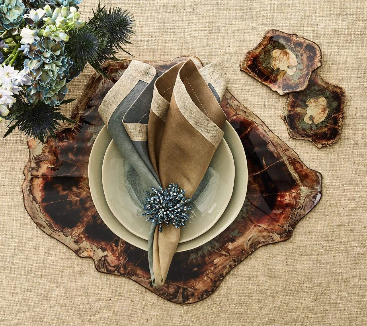 As its namesake suggests, the Fossil Placemat features a natural, organic replica of a fossil. Mimicking the rare and extraordinary conditions necessary for fossilization, these unique placemats add a level of depth and intrigue to any table setting. A photograph of a true fossil is printed on the placemat and backed with cork.