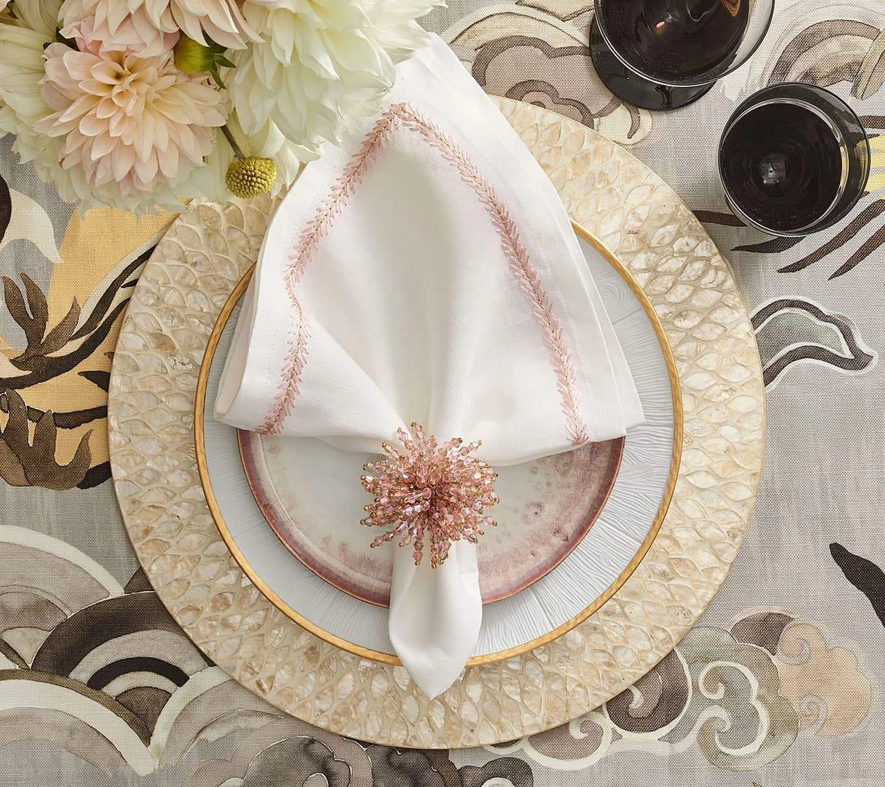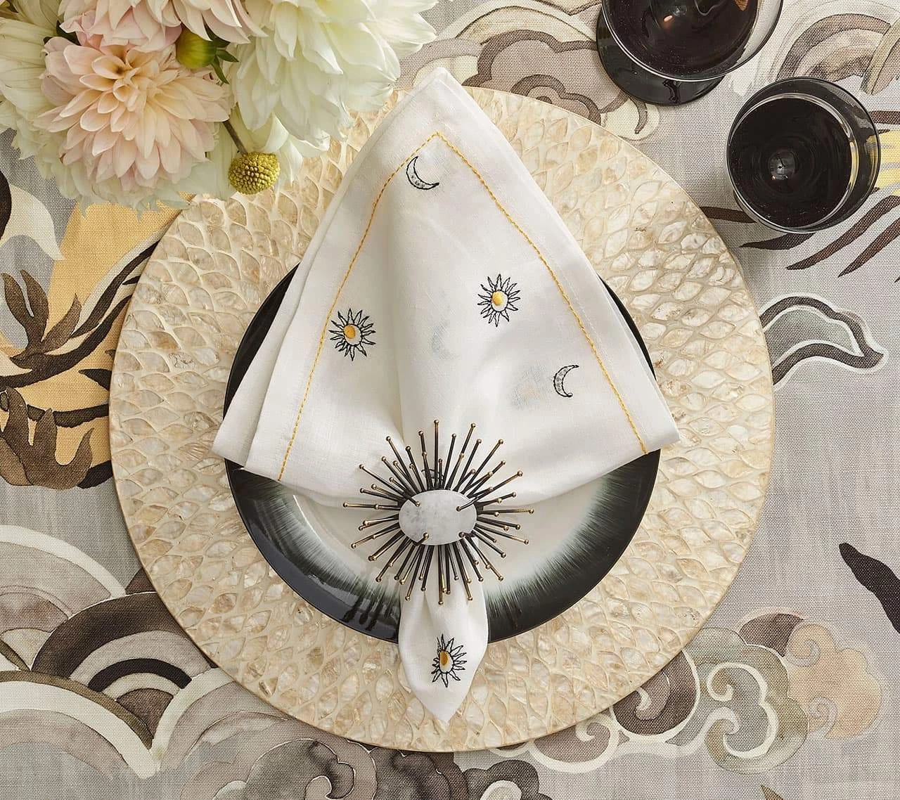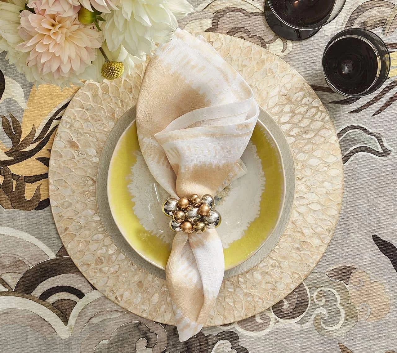 Perfect for a midsummer soiree the round, gold Marquis Placemat is a sophisticated take on summer entertaining, embracing subtle golds and champagnes. Featuring capiz shells that are cooked in a unique process to obtain a golden hue, then hand-cut and inlaid in a radiating pattern to form the round Marquis Placemat. This solely hand-crafted placemat allows for variation, each placemat is one-of-a-kind.