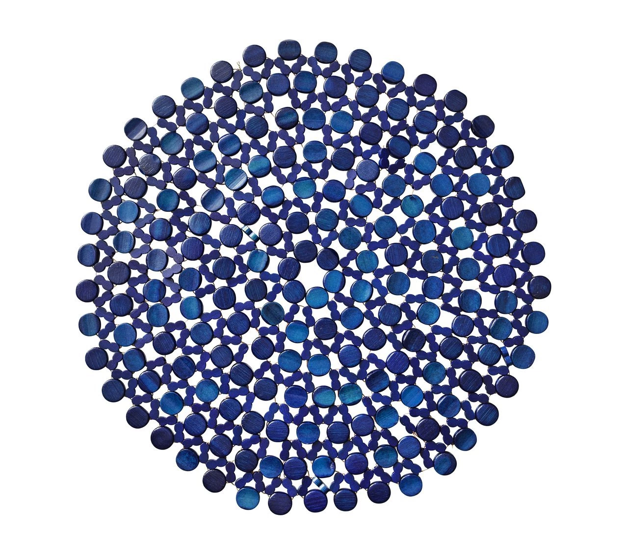 Shop Kim Seybert’s Round Bamboo Placemats from Kim Seybert. Each placemat is hand beaded and hand dyed. No two will be exactly alike. These placemats are perfect for outdoor entertaining and also come in natural brown, coral and white.