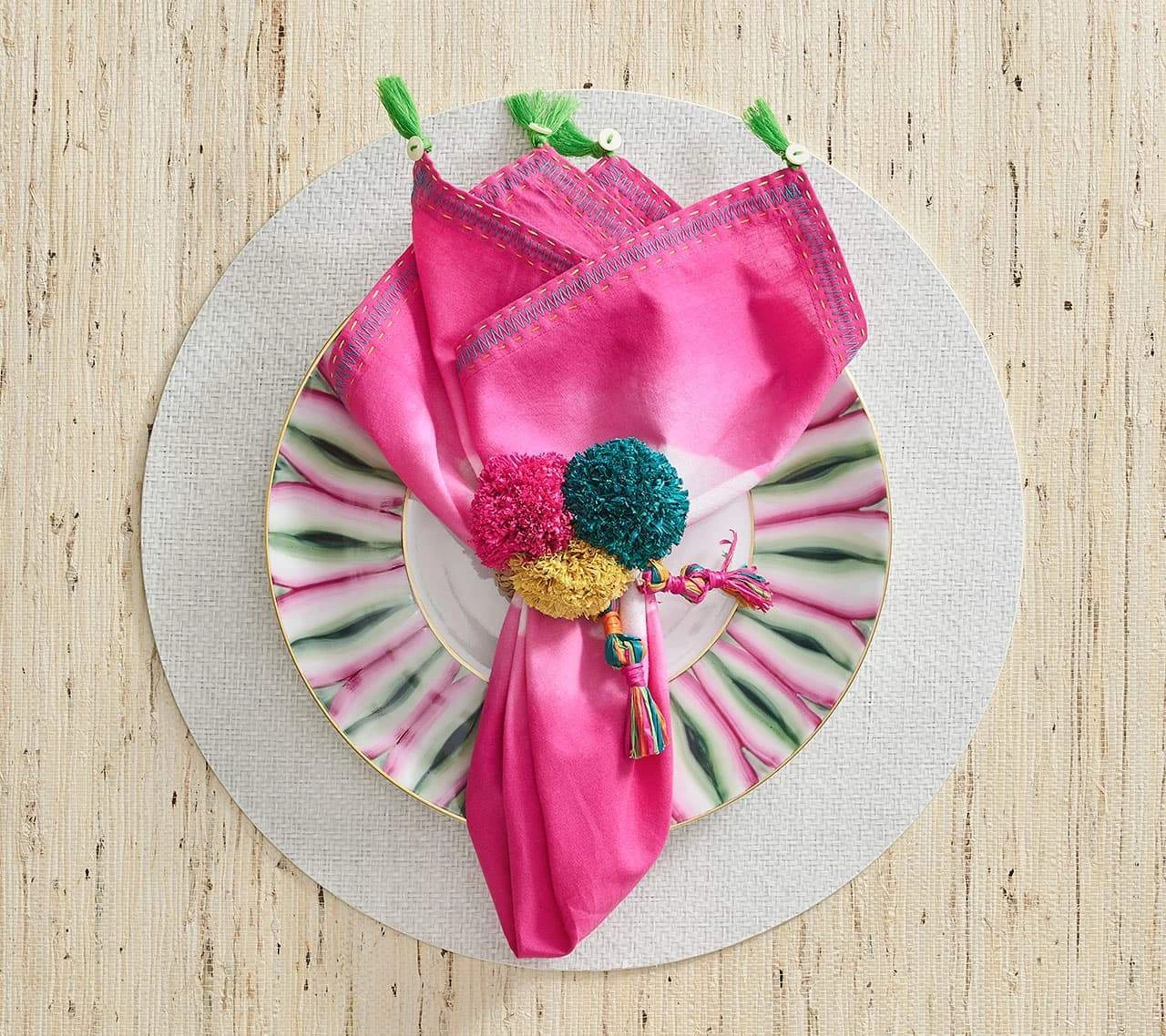 The round, woven Saigon Placemat features beautifully woven, white raffia, a modern take on a neutral palette. The round, woven Saigon Placemat utilizes the classic Vietnamese plaiting technique, giving the woven placemat texture and depth.