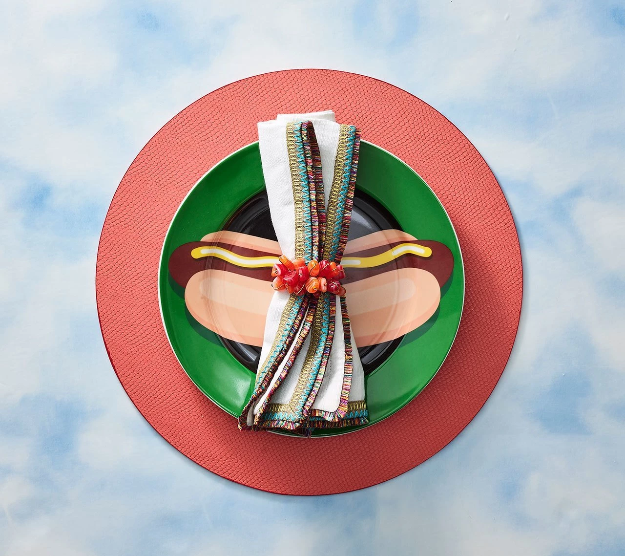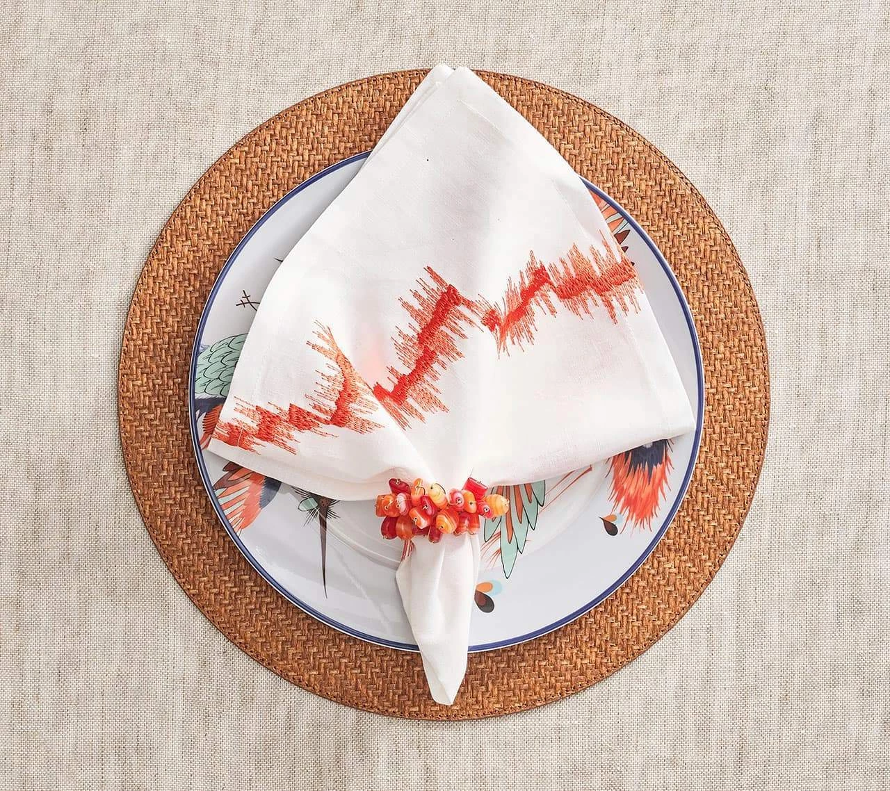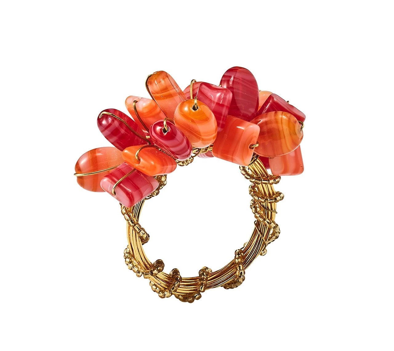 Iridescent, striated glass beads in striking shades of beachy coral are hand strung together. The Poppy Napkin Rings adds the perfect pop of color and texture without overwhelming your table.