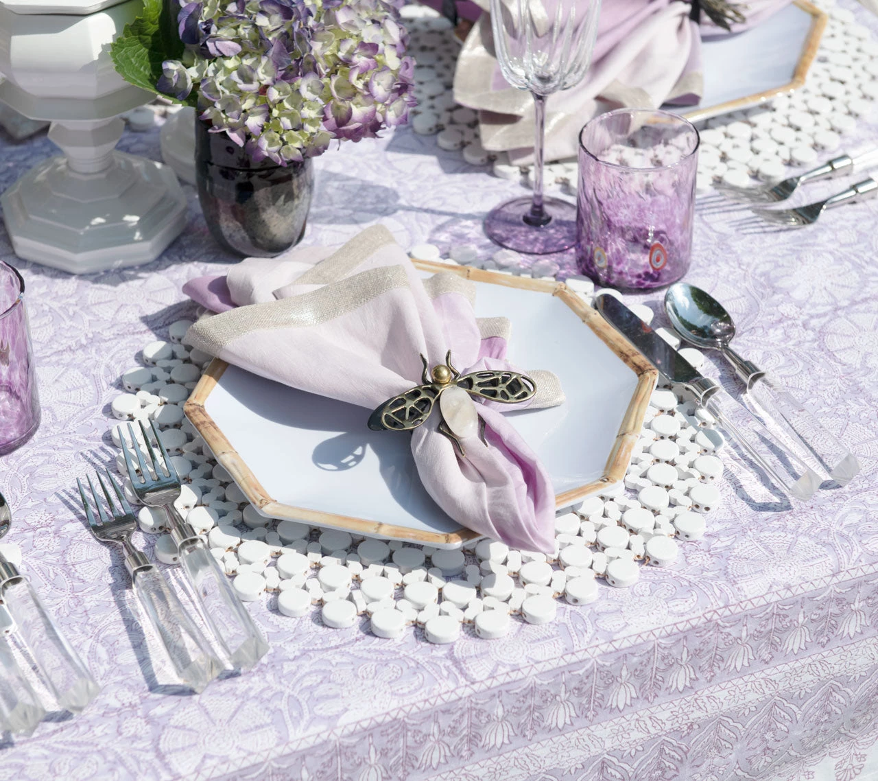 The lilac cloth Provence Tablecloth is inspired by the grounded patterns found throughout the Provence region of southern France. The traditional French pattern on this lilac cloth tablecloth pairs perfectly with the coordinating lilac cloth Provence napkins. For a country-inspired setting, mix and match this beautiful cloth tablecloth with various colors and textures.