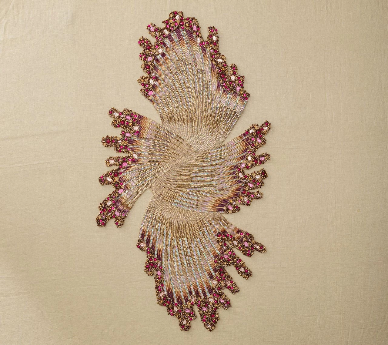 Inspired by its name, the beaded Plume Table Runner recreates bird-like feathers using a unique combination of beads, sequins and gemstones. This fall table runner features rich, festive hues in ambers, browns and auburns and a sophisticated interpretation of fall motifs. Set the stage for a lively holiday dinner with family and friends with this stunning, fall table runner.