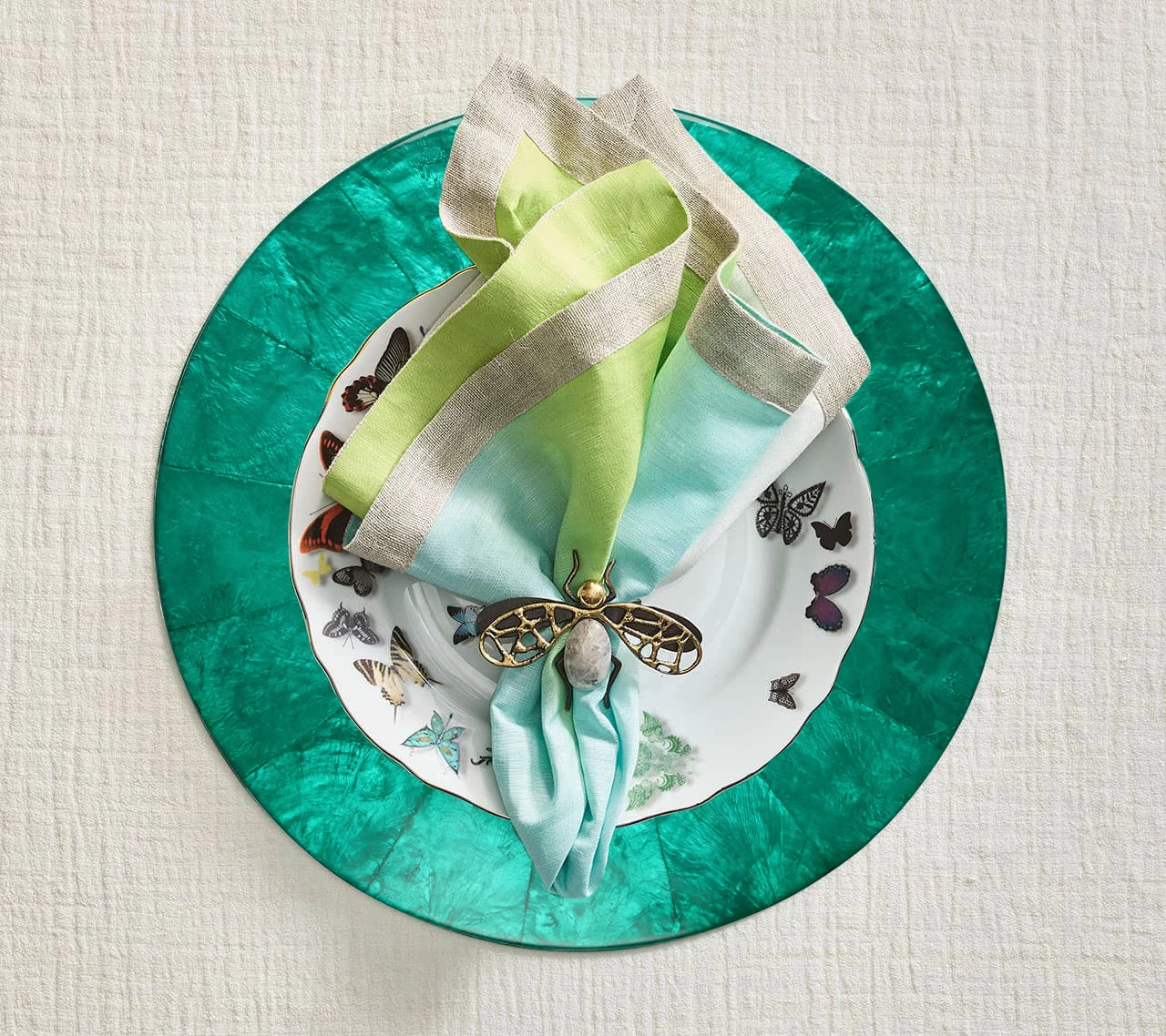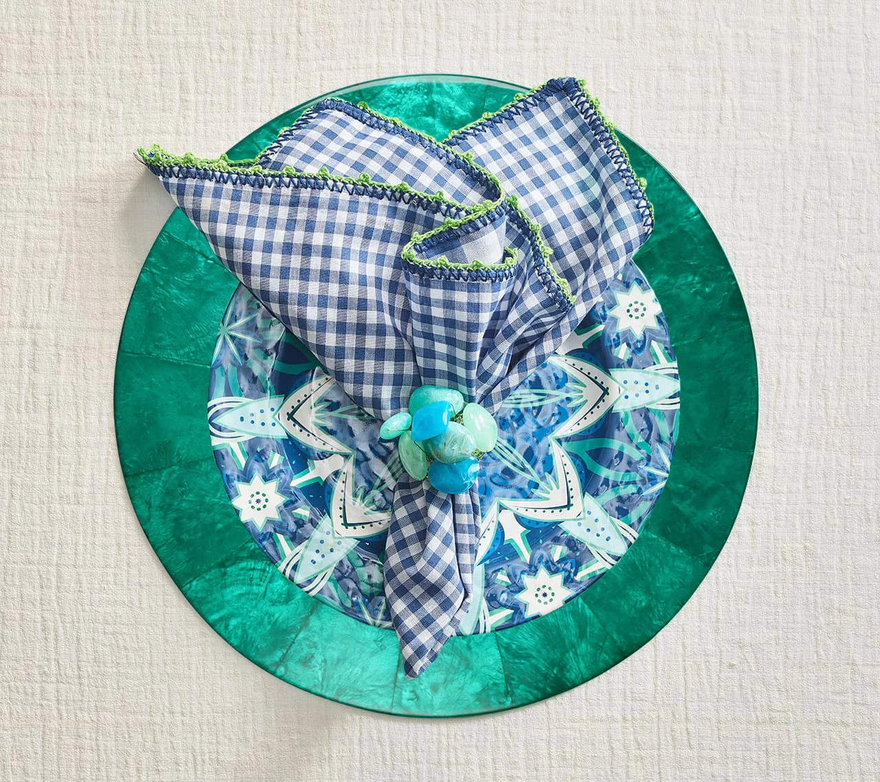 The delicate and natural beauty of the round Ombre Capiz Shell Placemat creates a stunning backdrop for any table. The subtle ombre gradation in stunning azule blue colors and organic nature of the round, capiz placemat is a classic staple for year round entertaining. Dress up the round Capiz Shell Placemat with beach-inspired accessories or use metallic accents for a more luxurious style.
