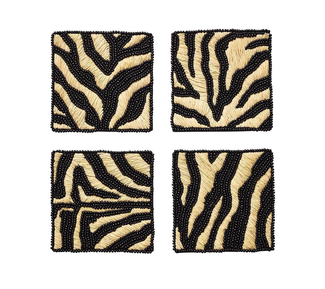 Take a walk on the wide side and add excitement to cocktail hour with our Serengeti Coasters. Raffia, glass and wooden beads are hand strung to create a realistic zebra pattern.