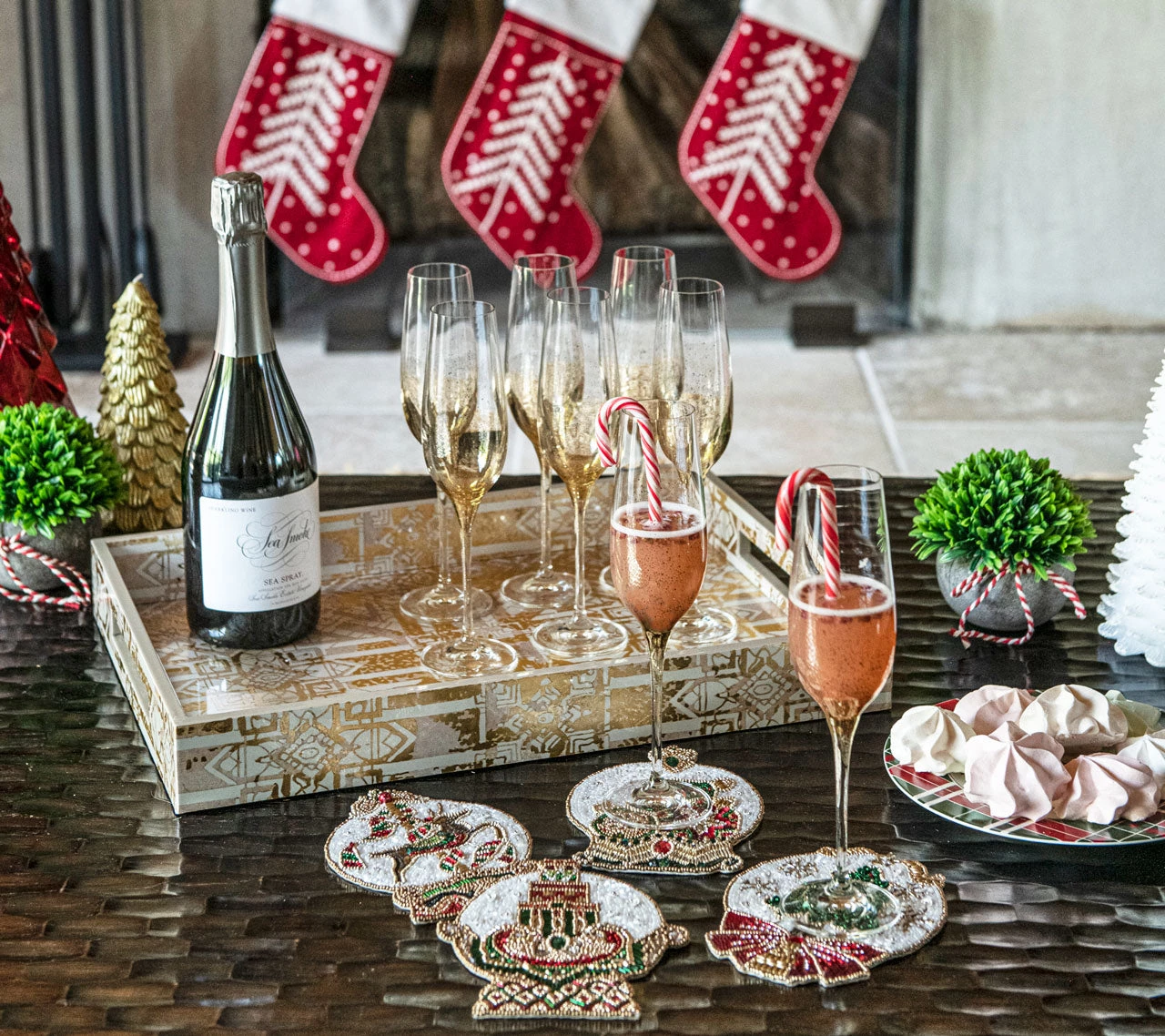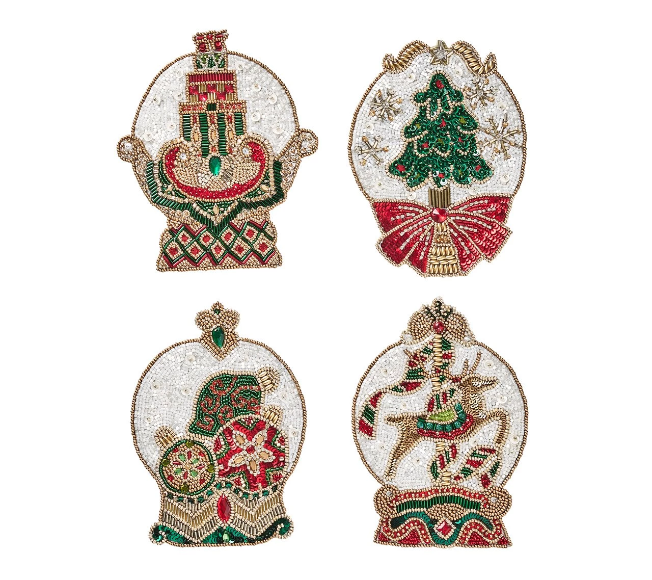 Inspired by nostalgic Christmas motifs, the beaded Snow Globe Coasters feature over 15 types of beads, sequins, and rhinestones. Each of the four beaded coasters reveals a different classic winter scene. The perfect host or hostess gift to evoke joyful childhood memories.