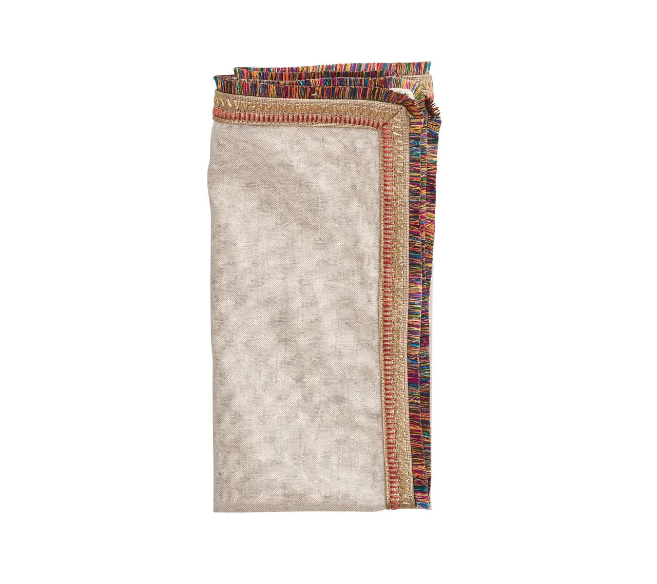 The Spectrum Napkin combines a multi-color embroidered border with a natural napkin. Featuring a spectrum of colors, from deep reds to majestic blues, these napkins are perfect for festive entertaining. Dress up a traditional table with these colorful napkins.