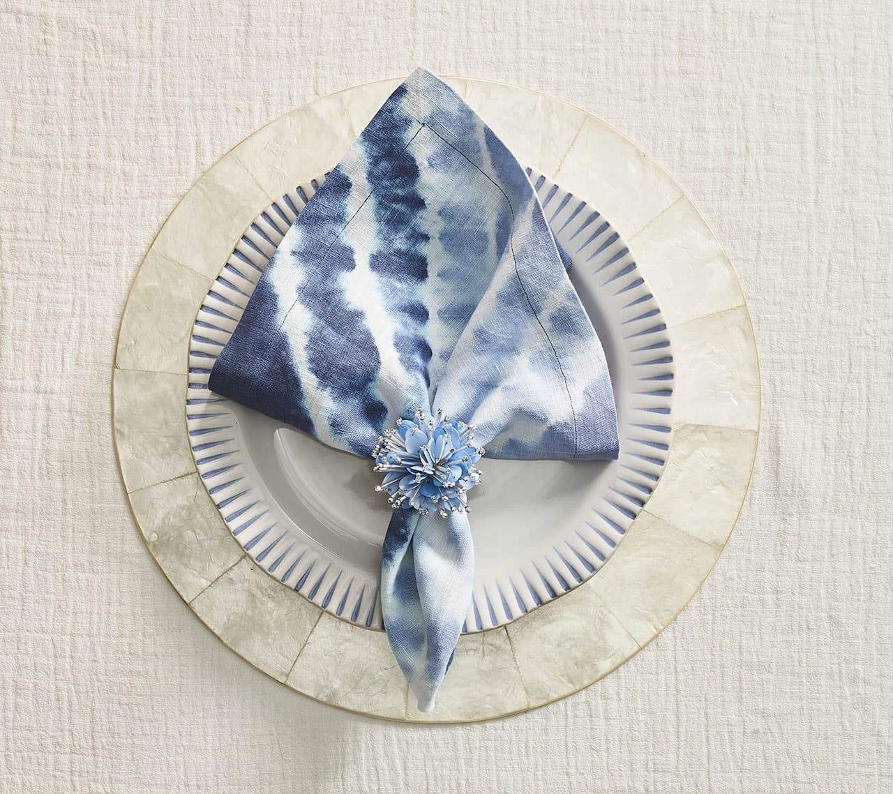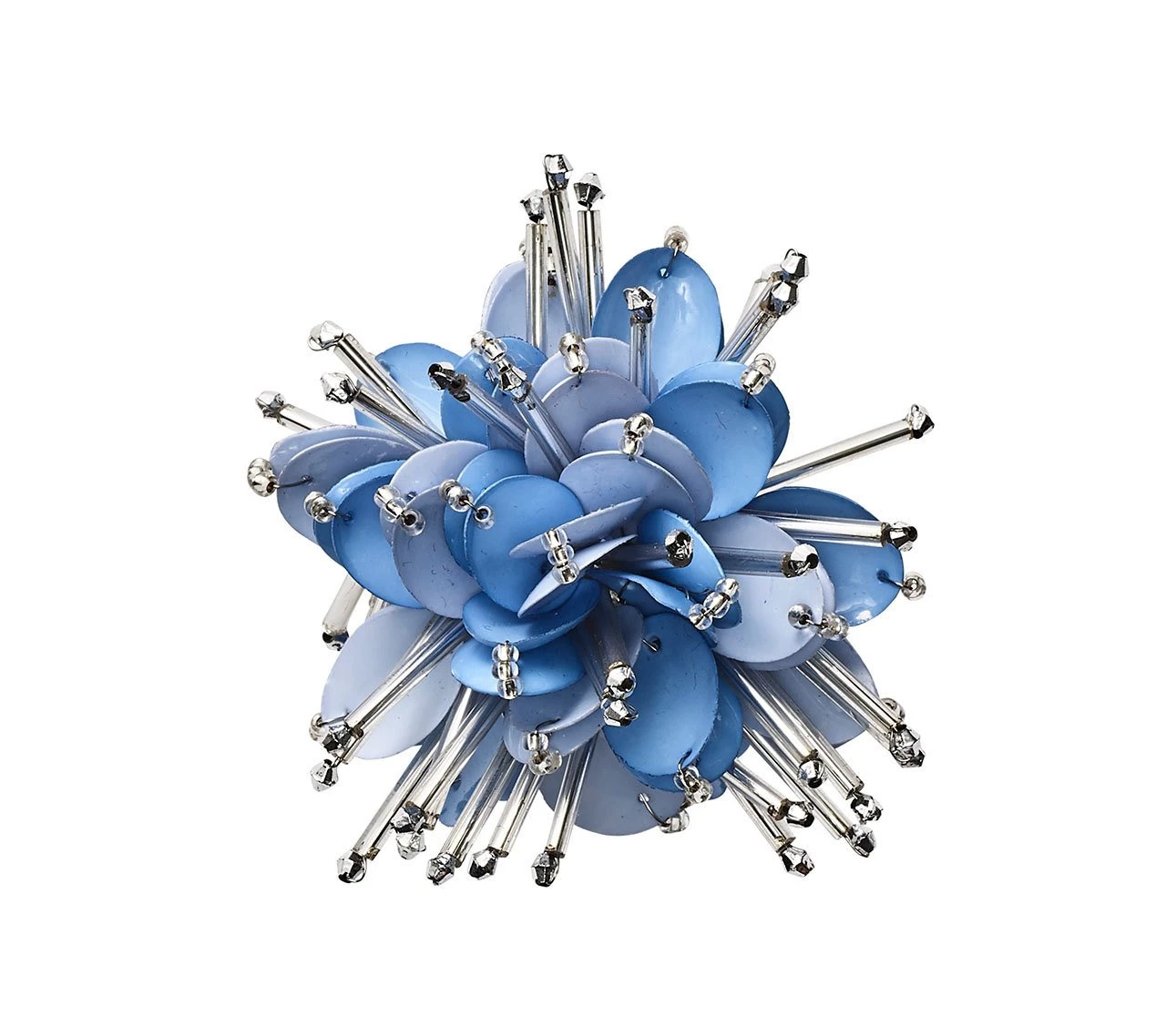 The Starburst Napkin Ring is inspired by the brilliant point of light emitted by the burst of a supernova. The glistening metallic periwinkle color will add a spark to any table.