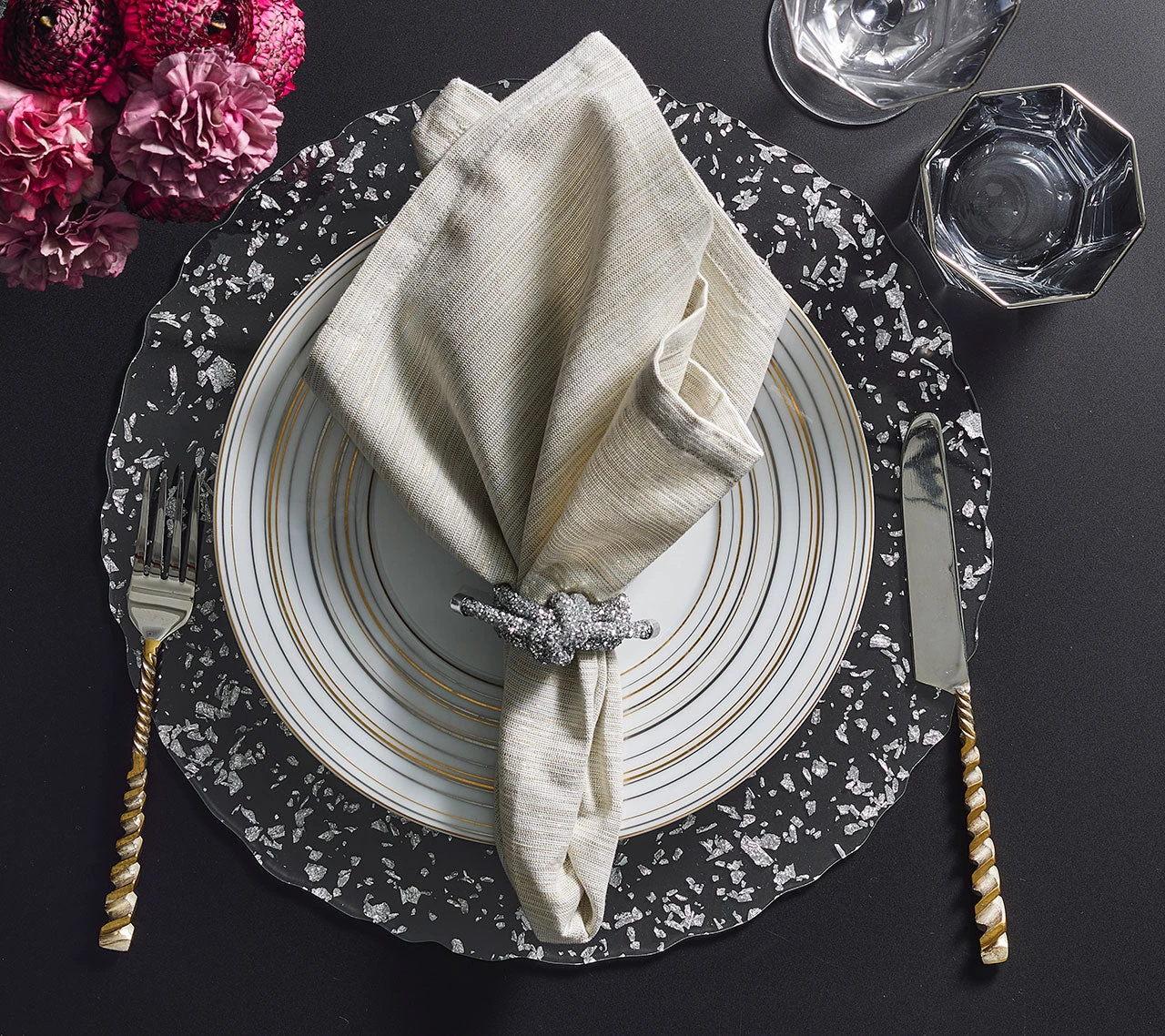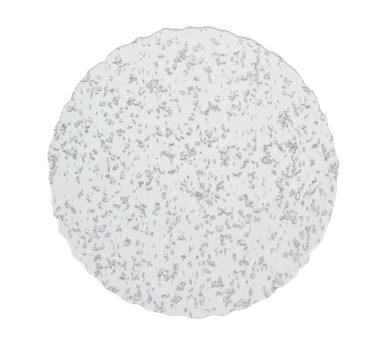 True to its name, the Stardust Collection imitates refractory dust grains emitted from cooling stars. Flecks of silver are spread by hand to create a unique pattern on the clear, acrylic Stardust Placemat. A wavy edge finishes the organic look of this placemat. Due to the hand-crafted nature of the poured acrylic, this placemat may vary from one to another.