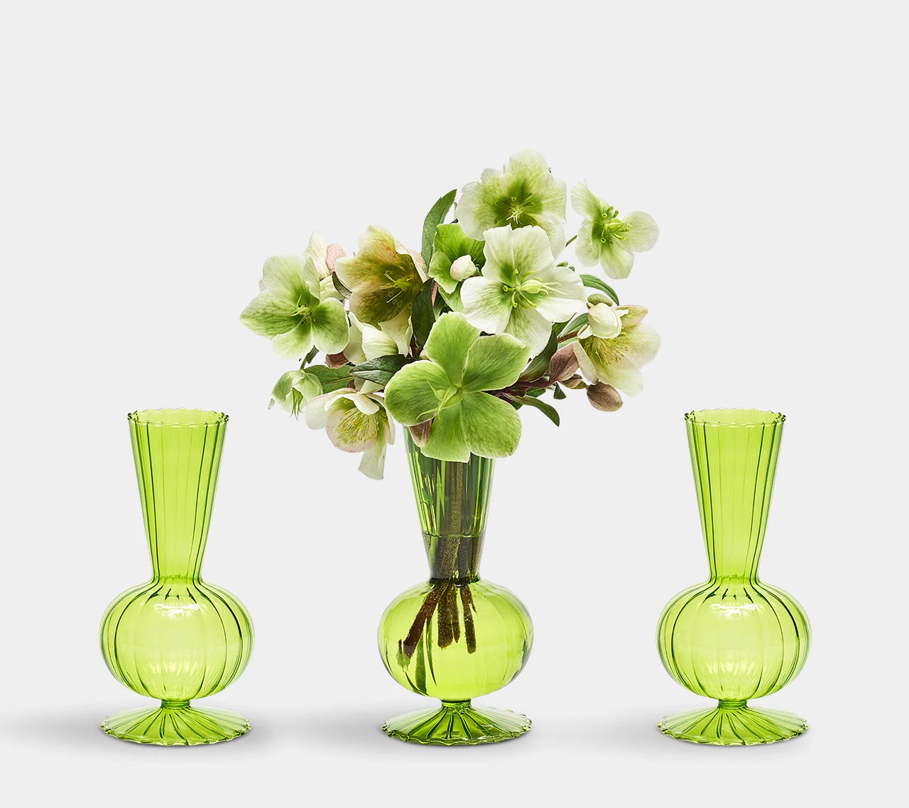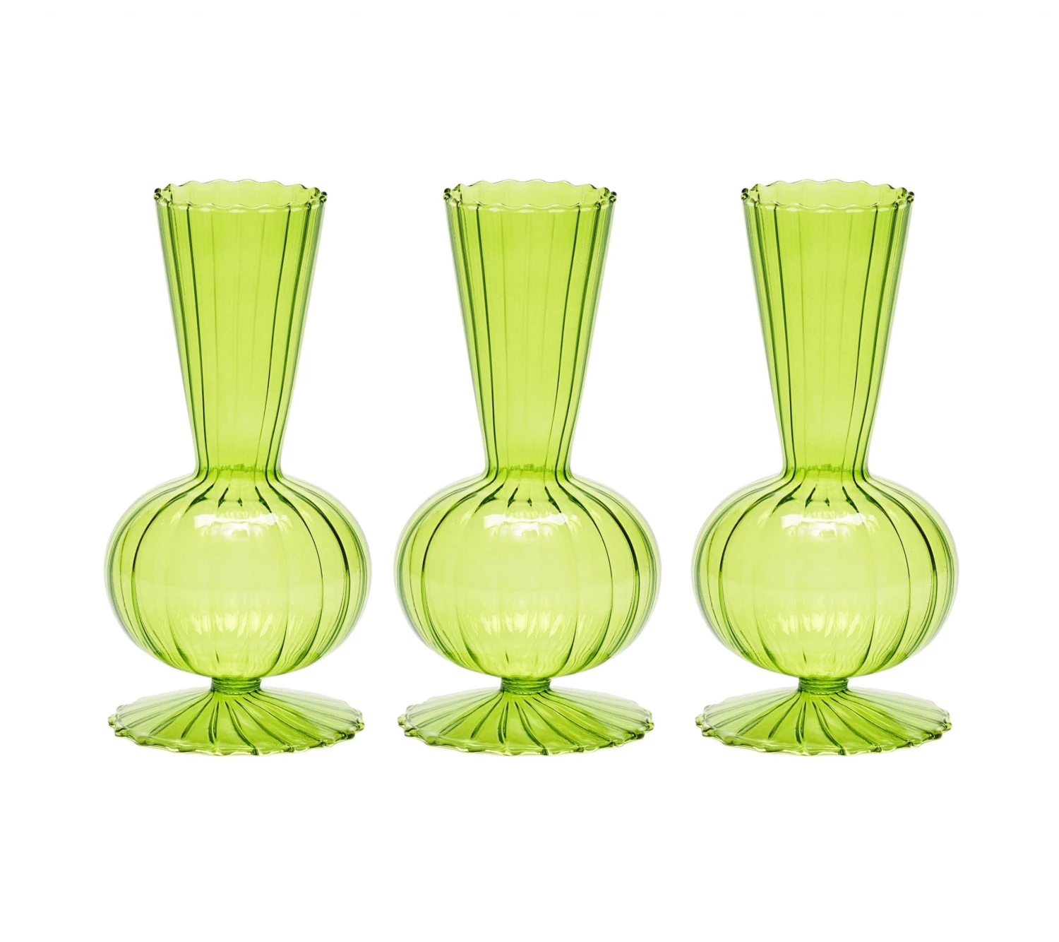 The delicate, hand-blown glass Tess Bud Vase features a tapered flute atop a globe and finished with a scalloped base. This stunning glass bud vase adds sophistication to any table.