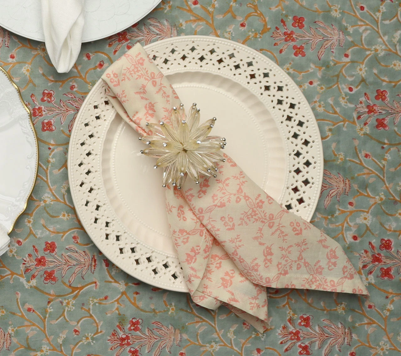 Bring a sense of country romance to your table with the Tess Napkin. Featuring a repeating floral print the Tess Napkin is made of 100% cotton and is made through a unique, hand-printing technique.