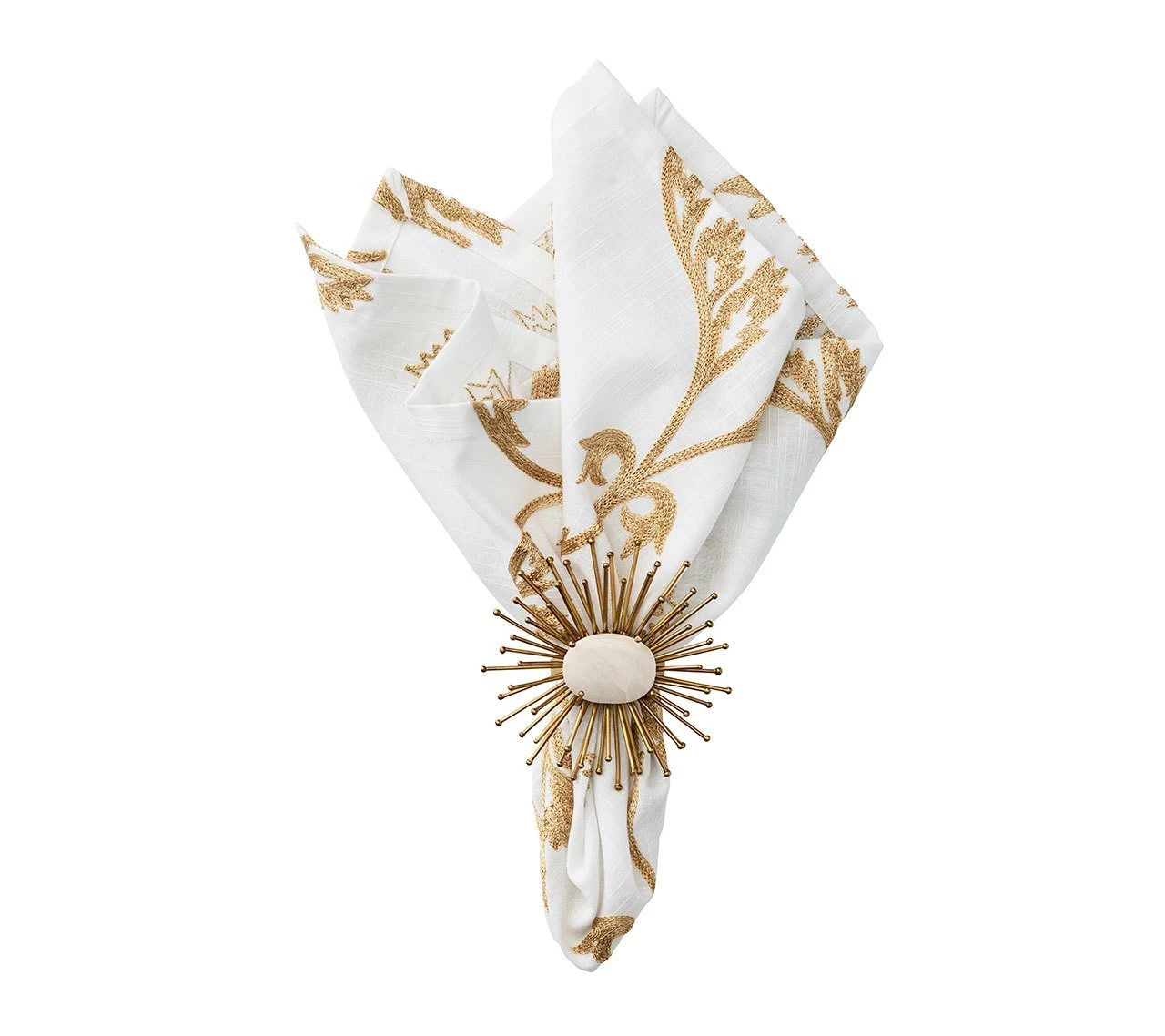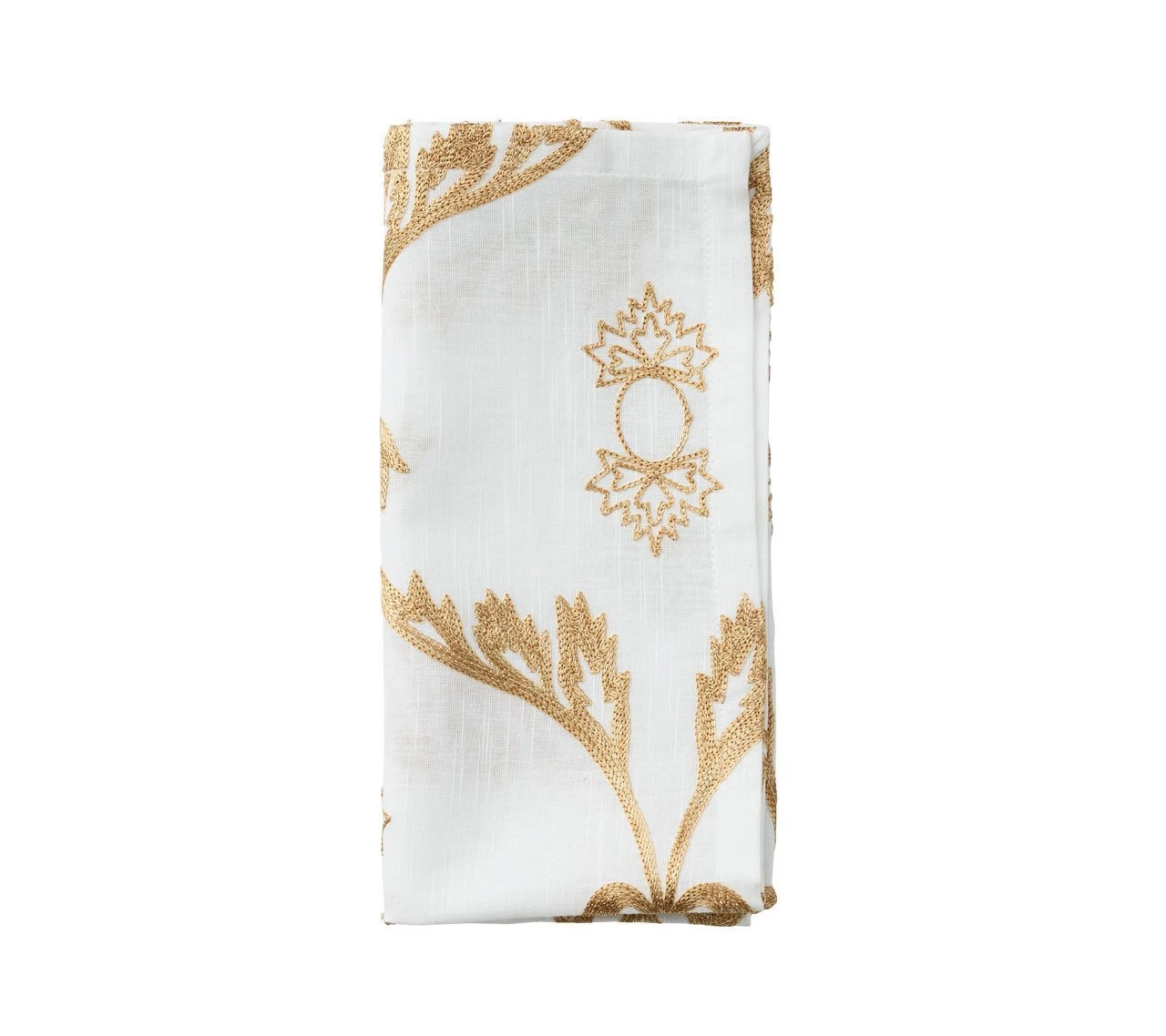 A vintage Suzani fabric was the inspiration for this napkin. It has a white cotton linen base and is embroidered in tonal threads to create depth and illusion. Choose from three color combinations: Natural, Navy or Gray. Whichever you go for, the Wisteria napkin is bound to add a quiet elegance to your table. Â